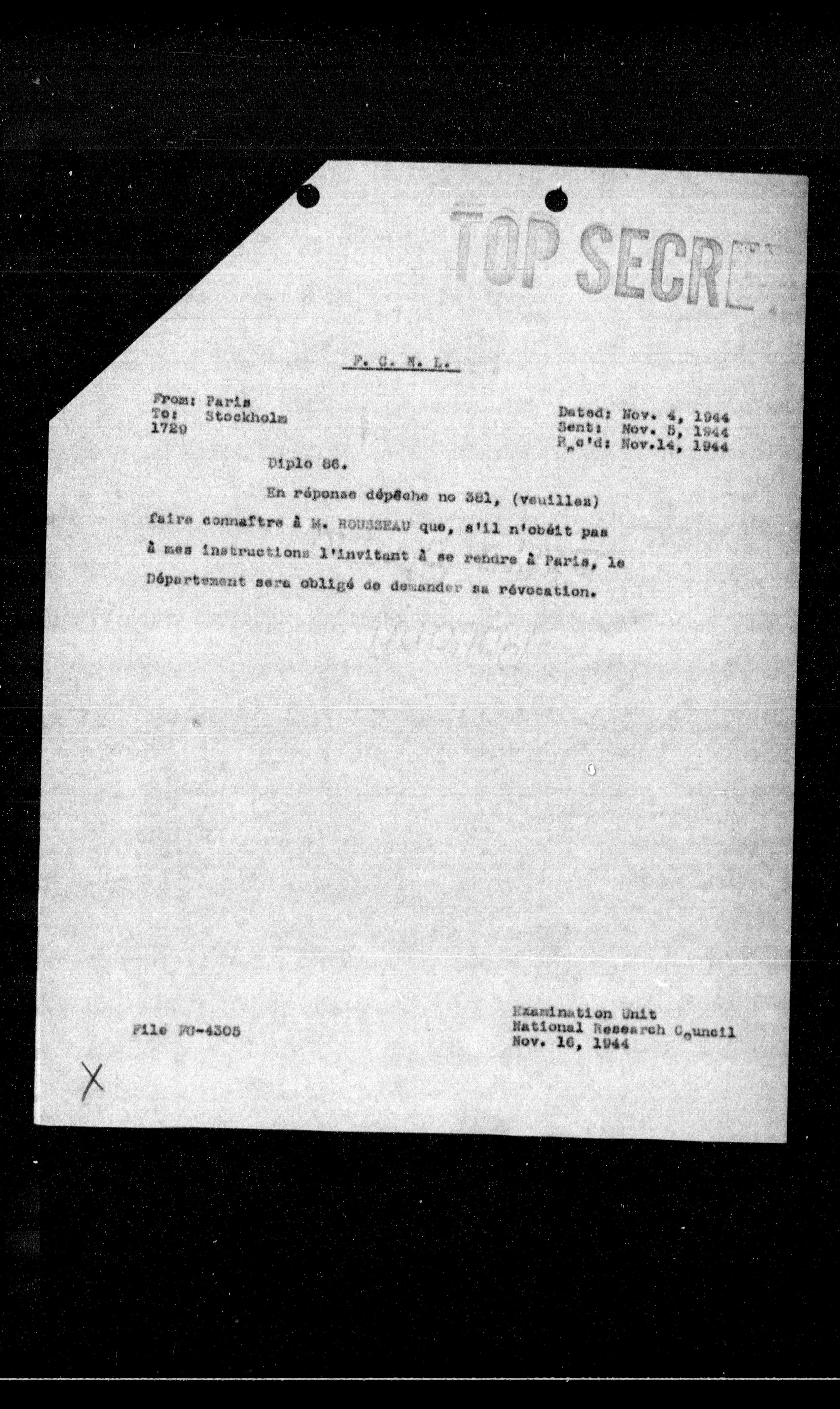 | To: Stockholm | Dated: Nov. 4, 1944 | |