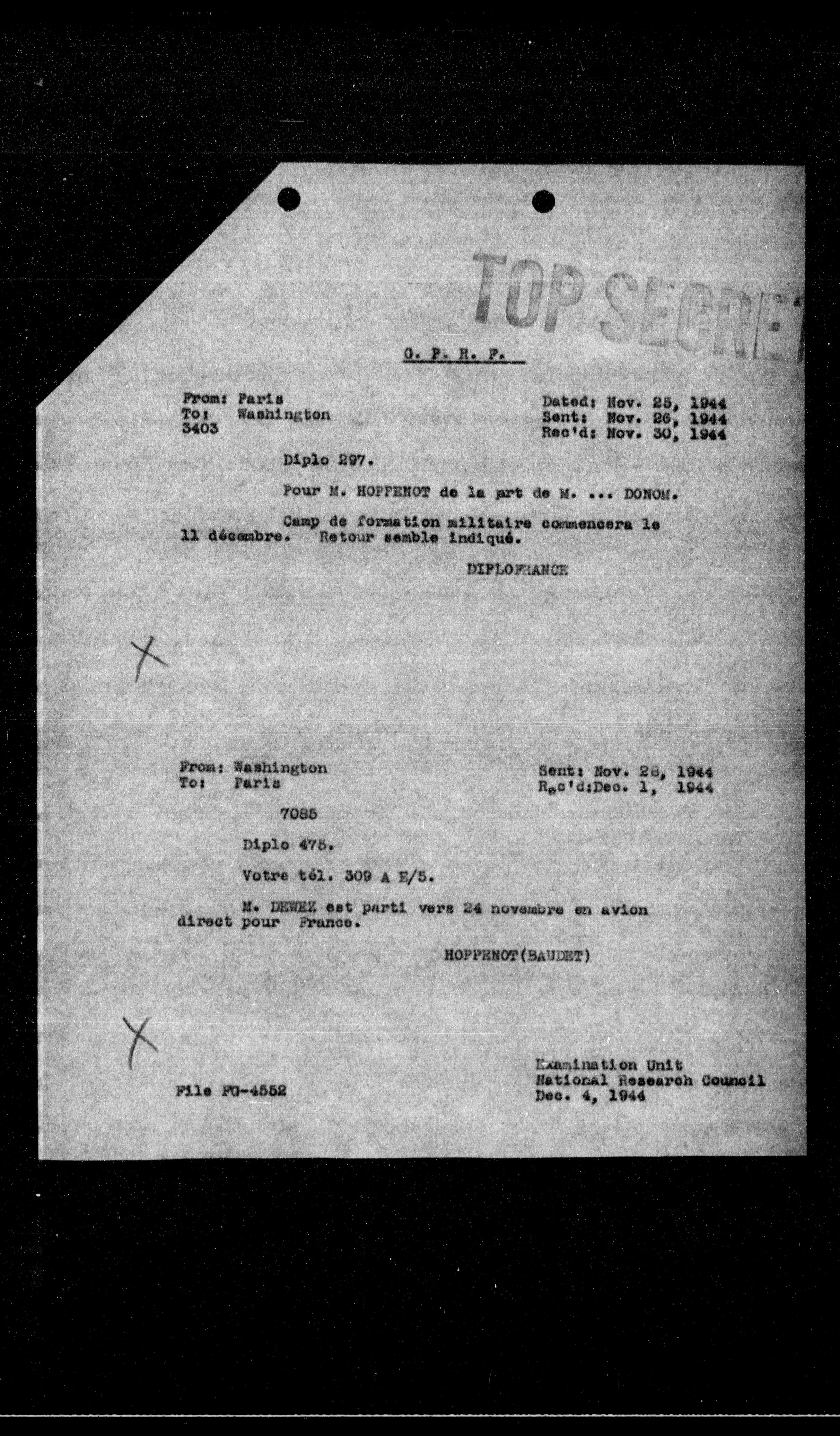 **From:** Washington **To:** Paris **Sent:** Nov. 26, 1944 **Rec'd:** Dec. 1, 1944