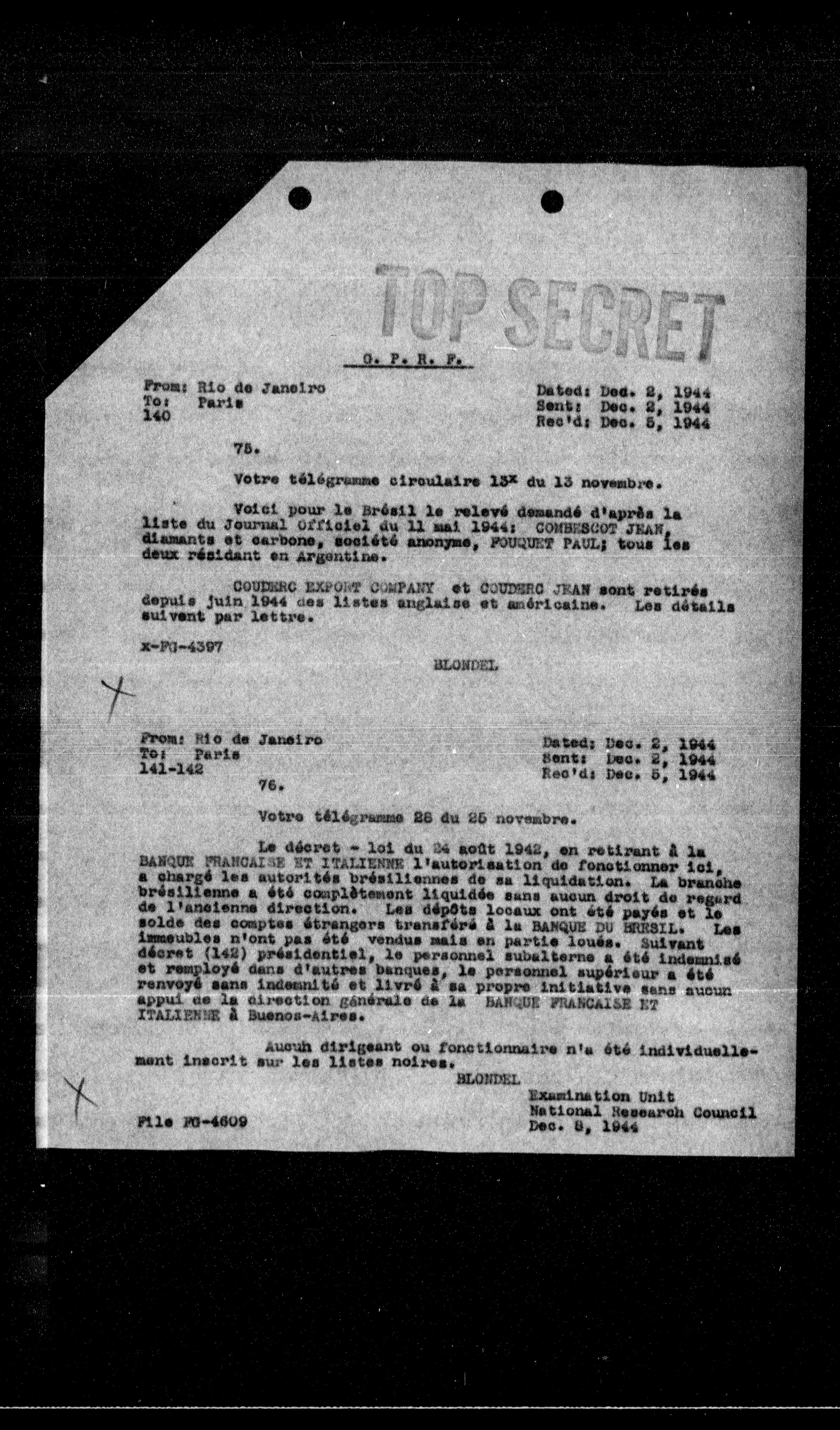 **From:** Rio de Janeiro **To:** Paris **Date:** Dec. 2, 1944 **Rec'd:** Dec. 5, 1944