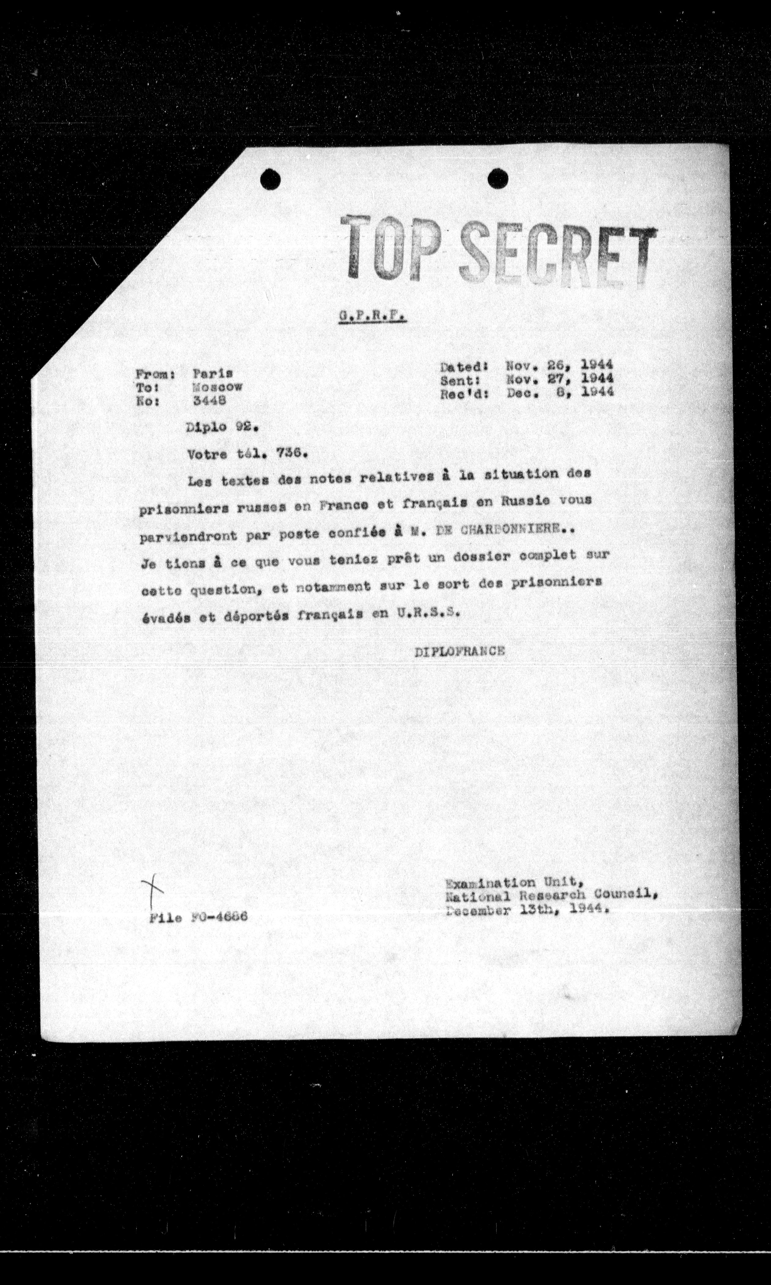 Je tiens à ce que vous teniez prêt un dossier complet sur cette question, et notamment sur le sort des prisonniers évagés et déportés français en U.R.S.S.