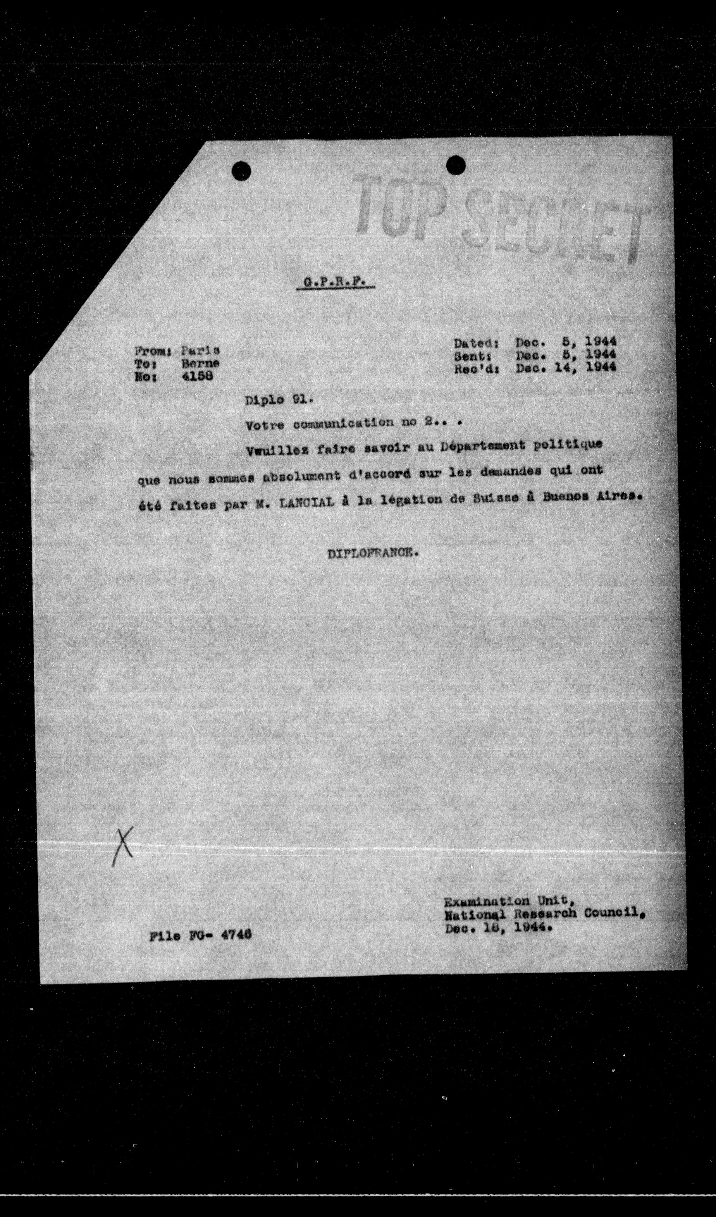 | No: 4158 | Rec'd: Dec. 14, 1944 |