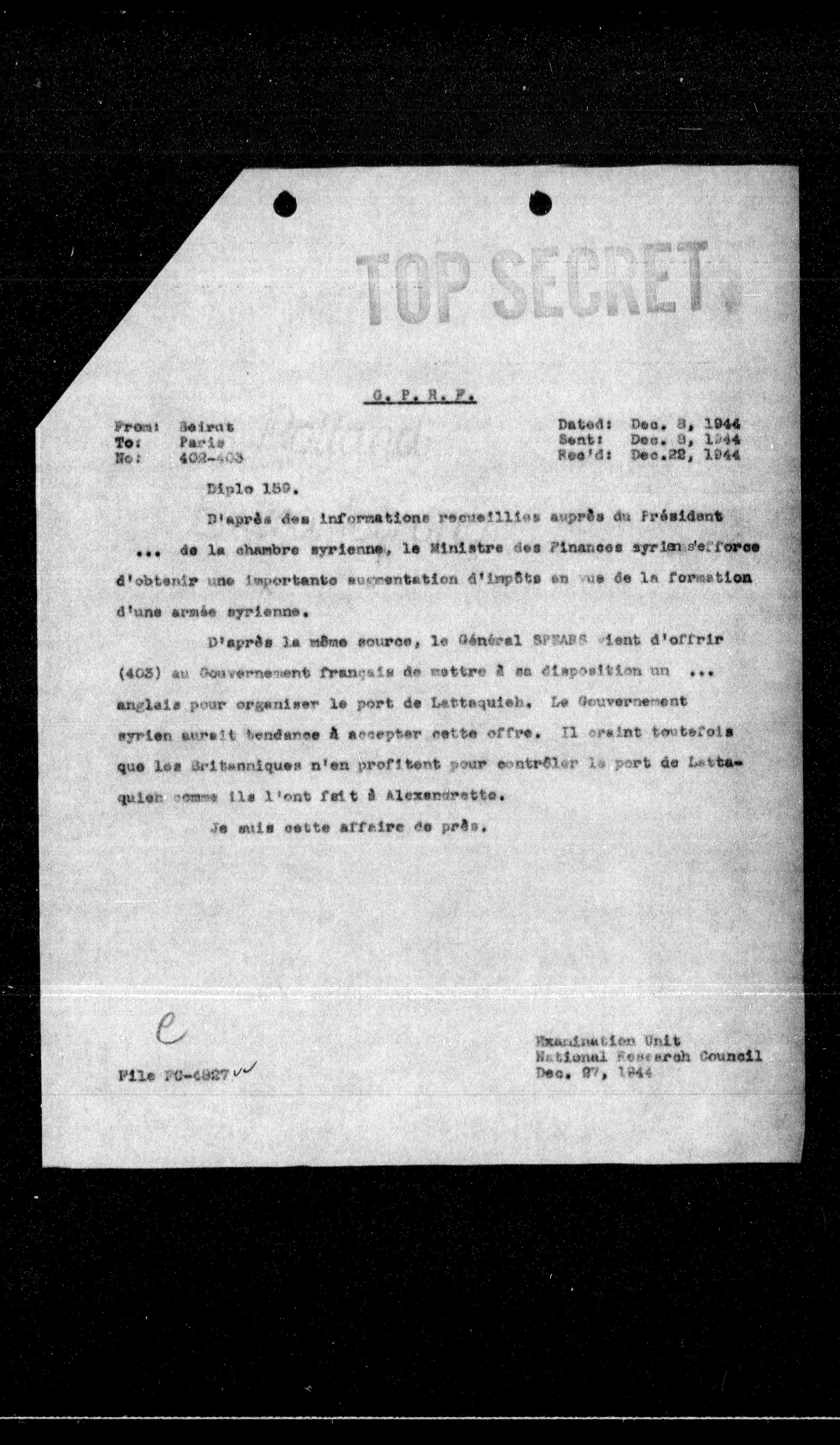 “Reel 17425 - Page 1071,” The Canadian Vichy Intercepts, accessed December 28, 2025, http://omeka.uottawa.ca/examination-unit/items/show/12328.