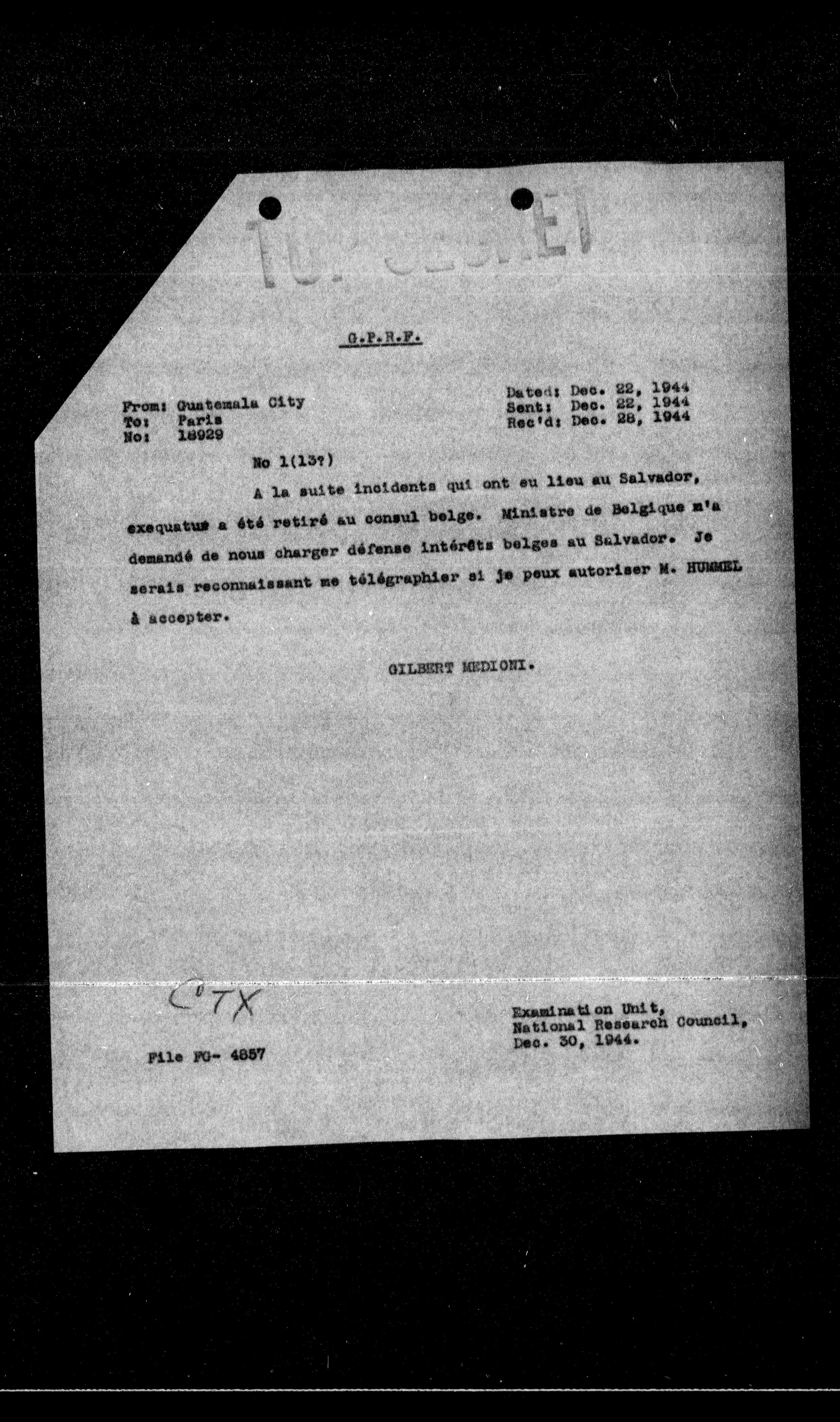 Examination Unit, National Research Council, Dec. 30, 1944.