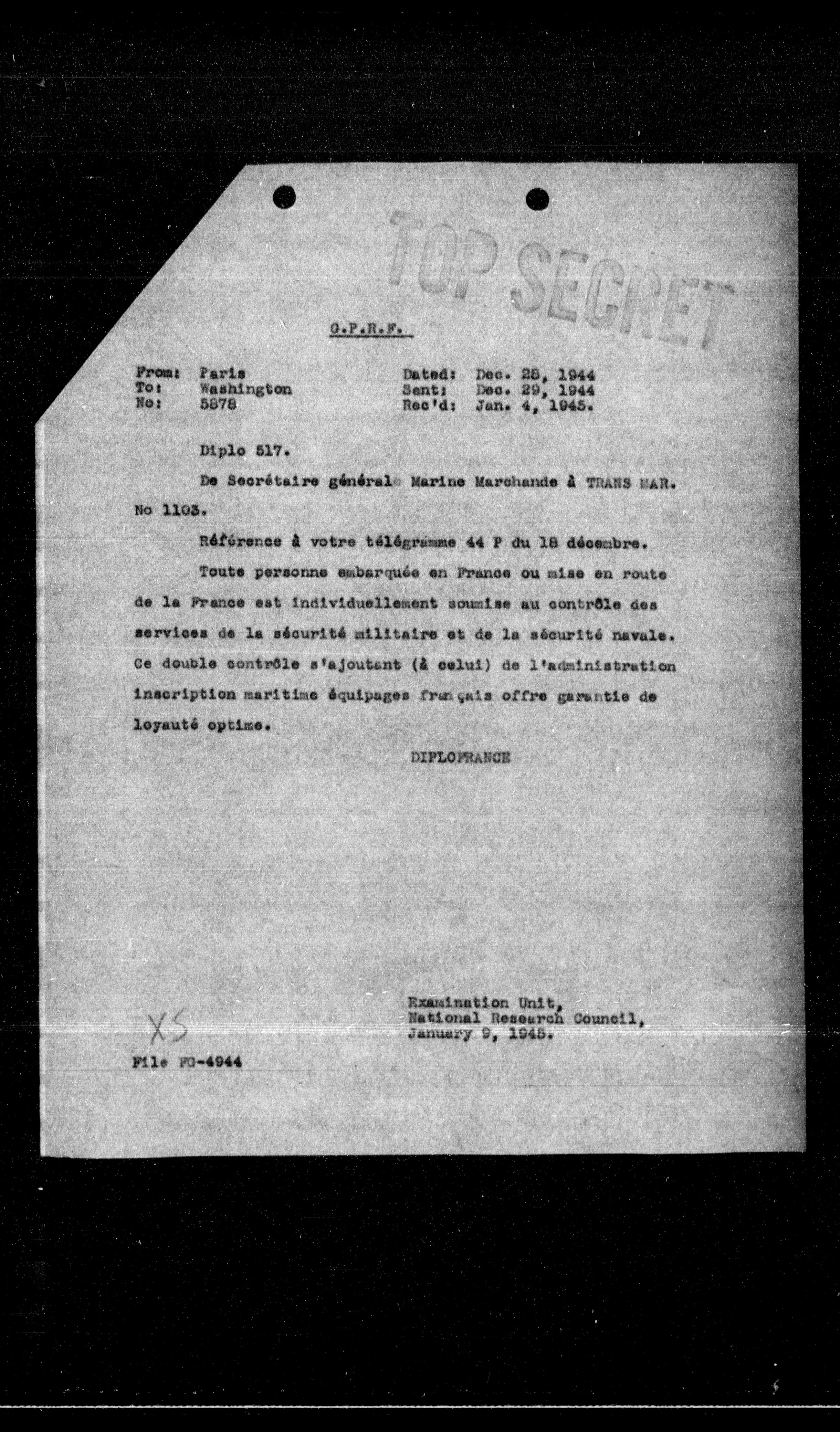 Sent: Dec. 29, 1944