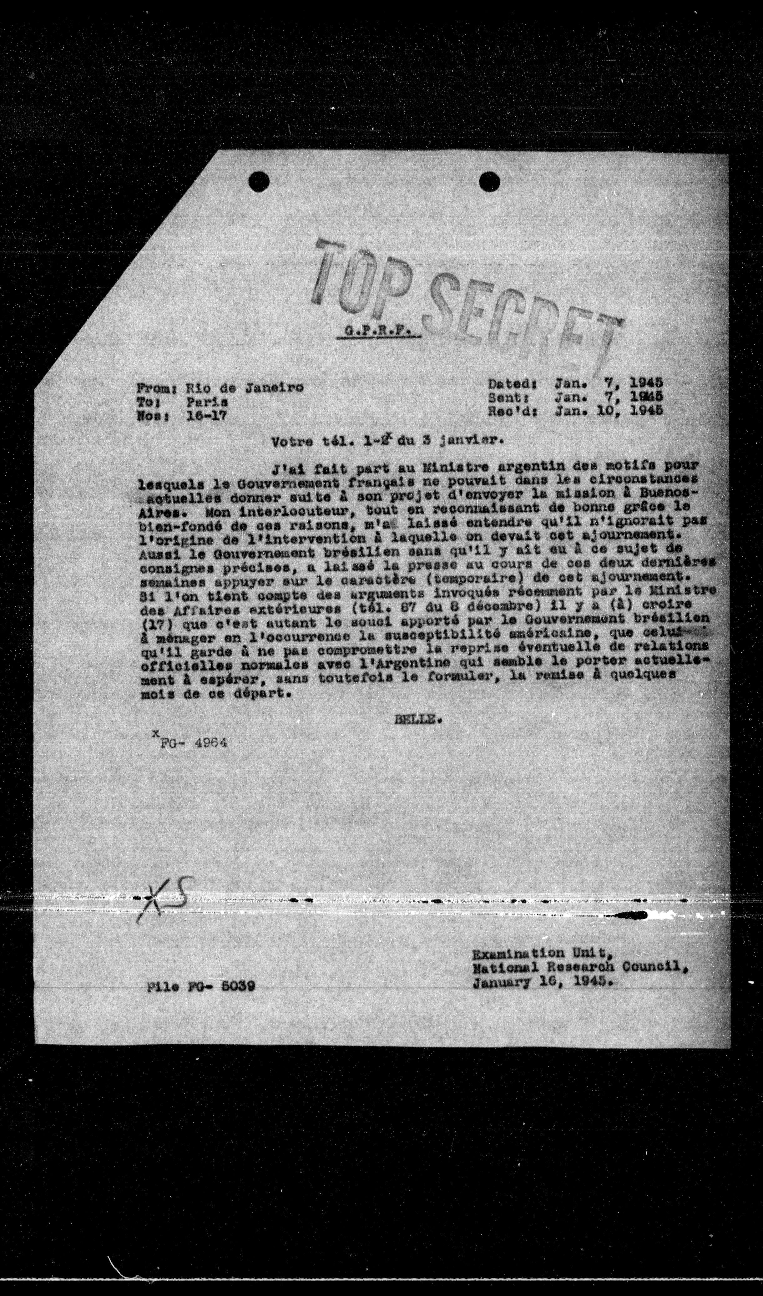 **Sent:** Jan. 7, 1945