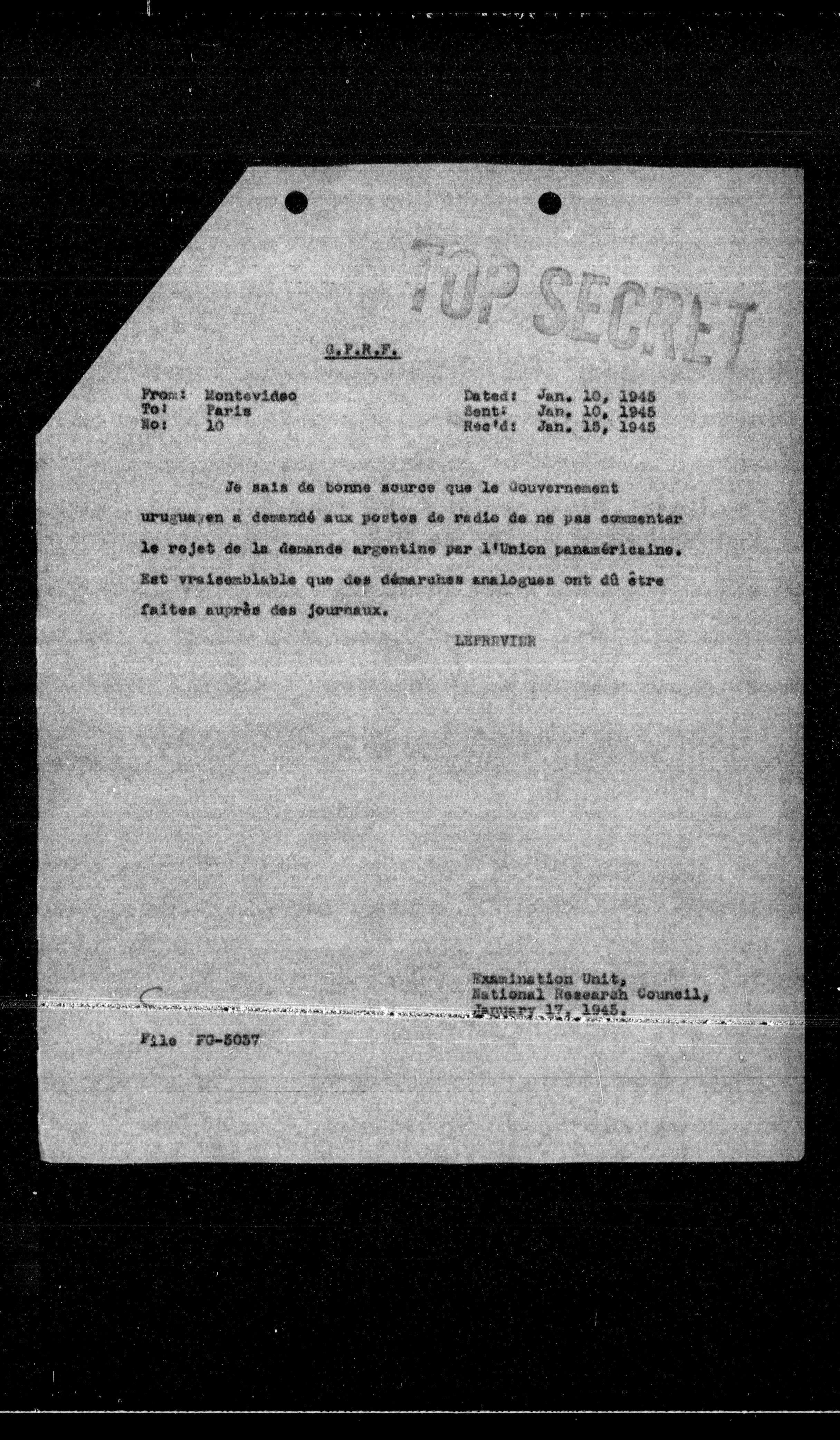**Examination Unit, National Research Council, Uruguay 17, 1945.**