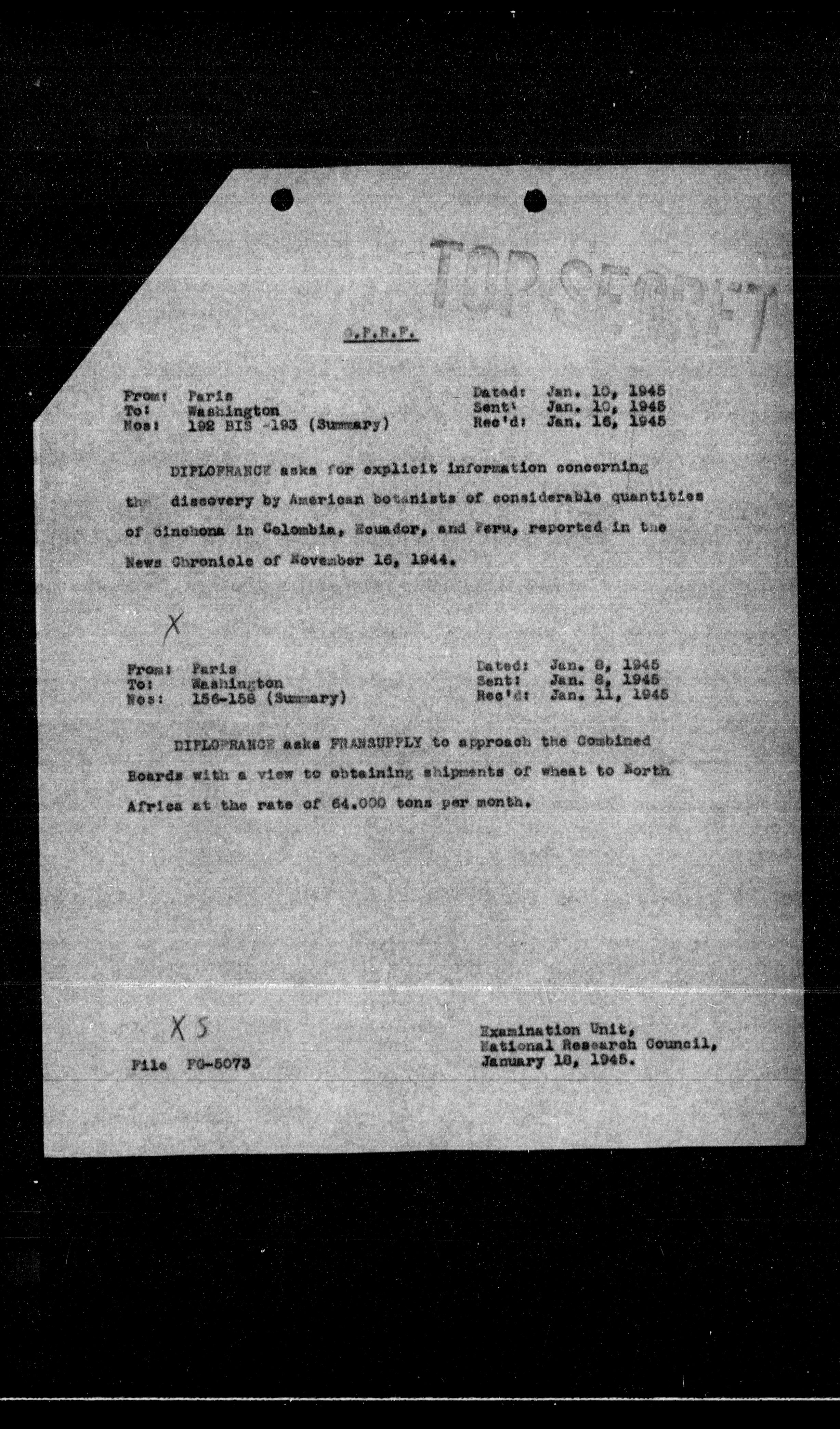 **From:** Paris **To:** Washington **Nos:** 156-158 (Summary)