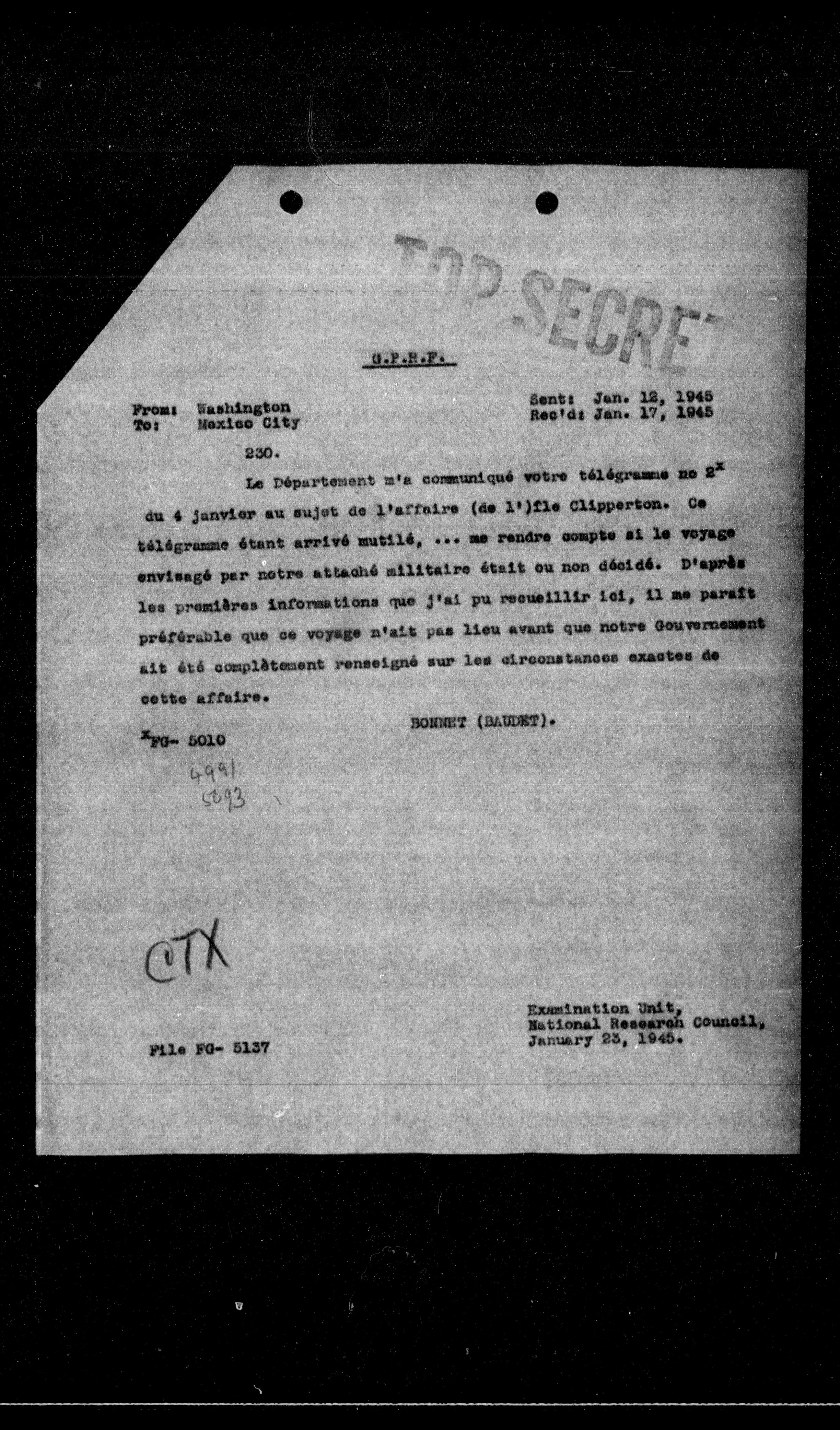 du 4 janvier au sujet de l'affaire (de l'jfle clipperton. Ce