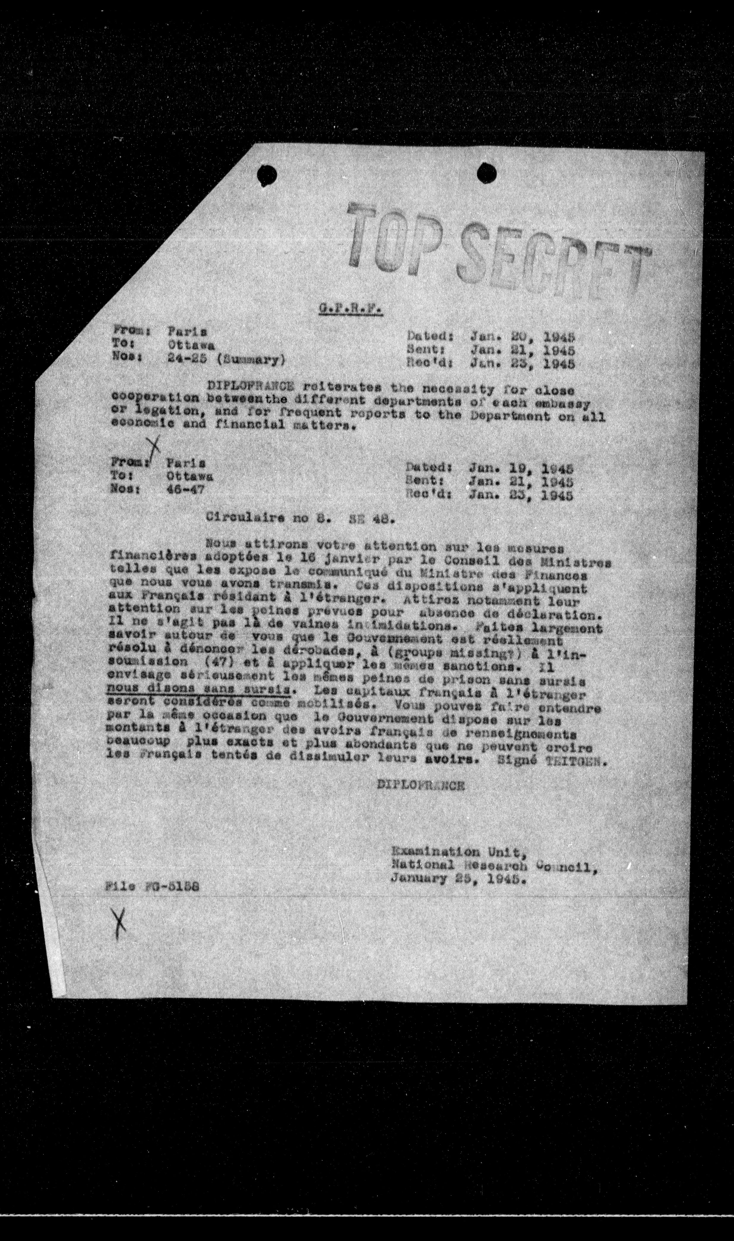 **From:** Paris **To:** Ottawa **Nos:** 24-25 (Summary)