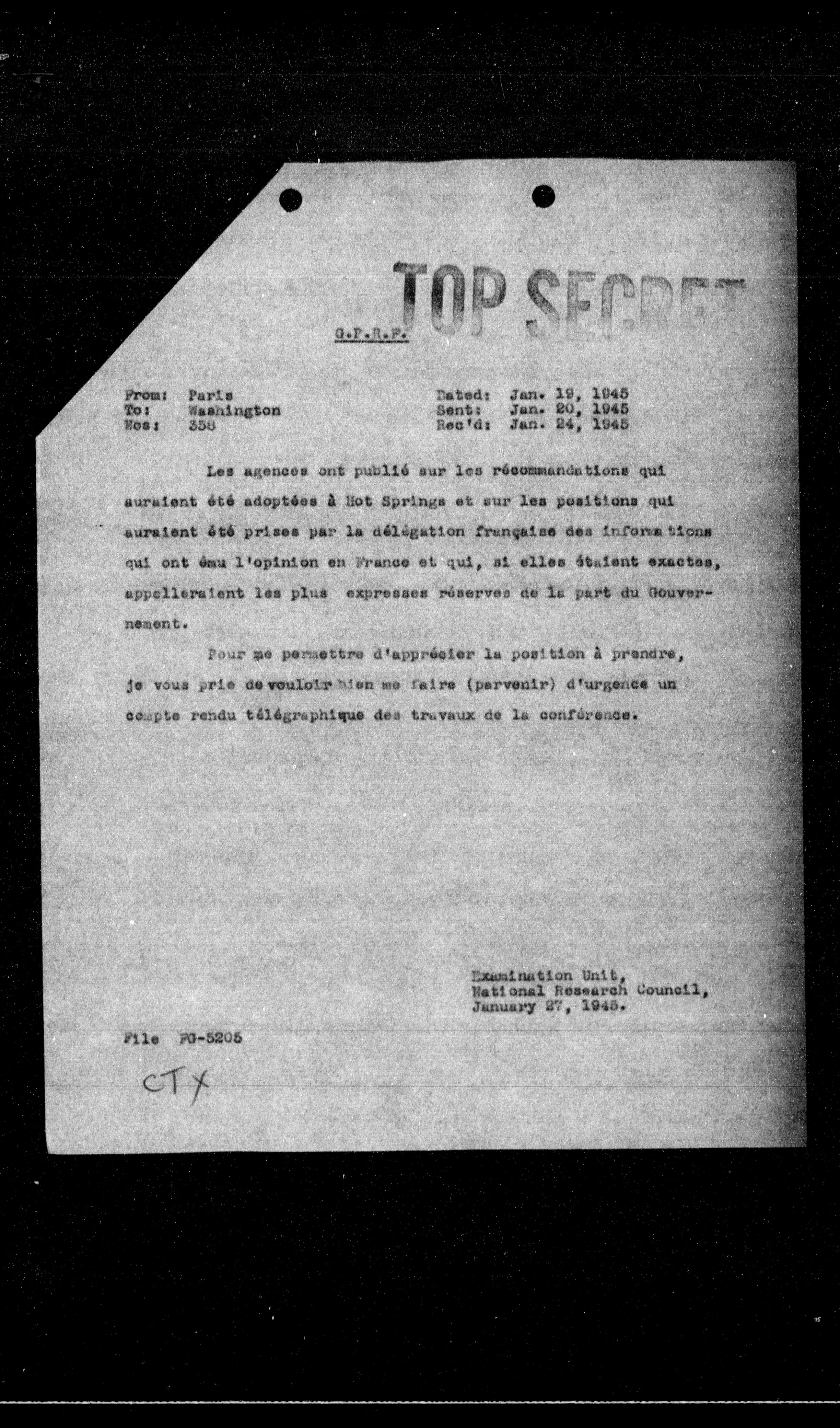 > Examination Unit, National Research Council, January 27, 1945.