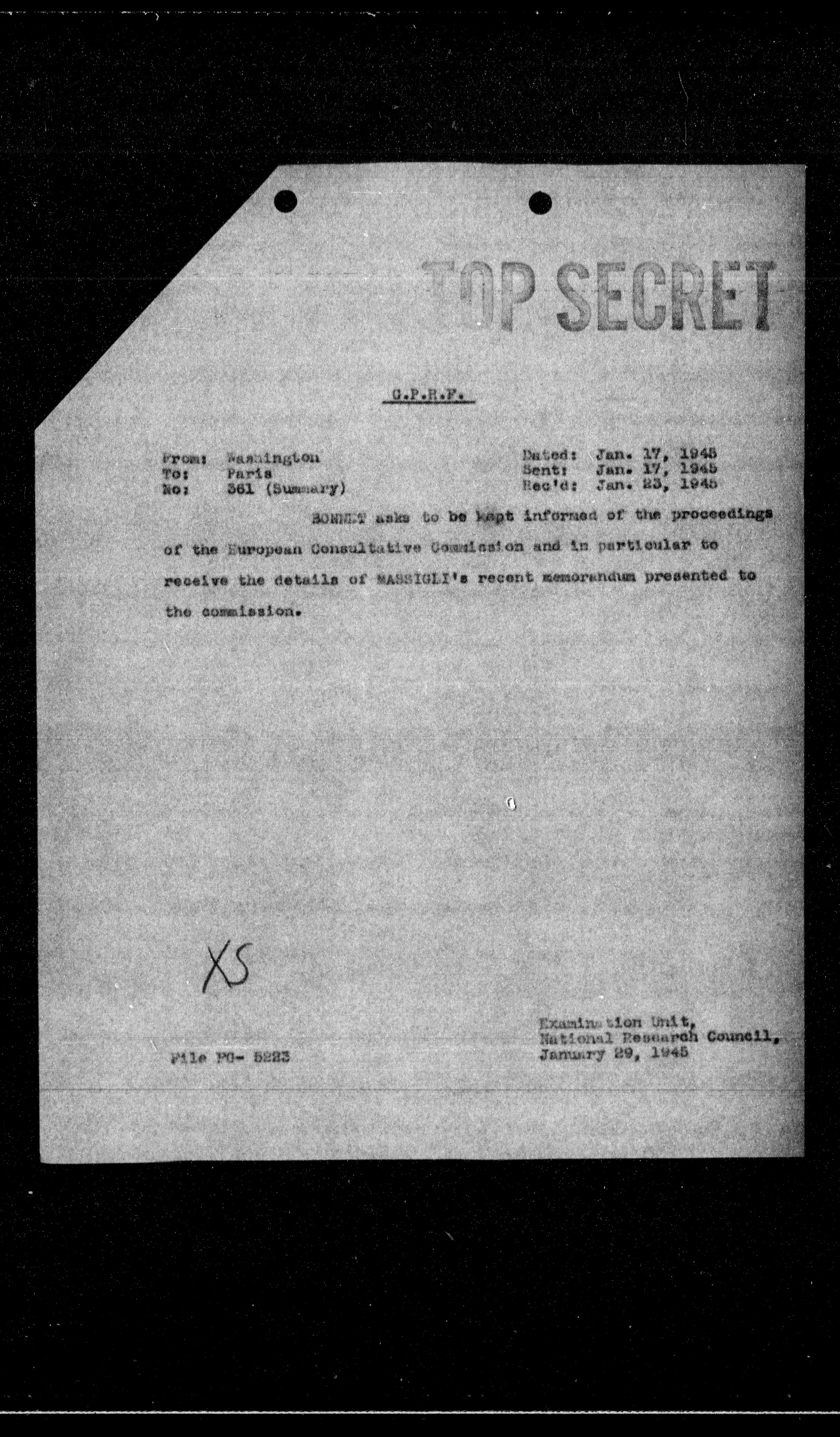 Sent: Jan. 17, 1945
