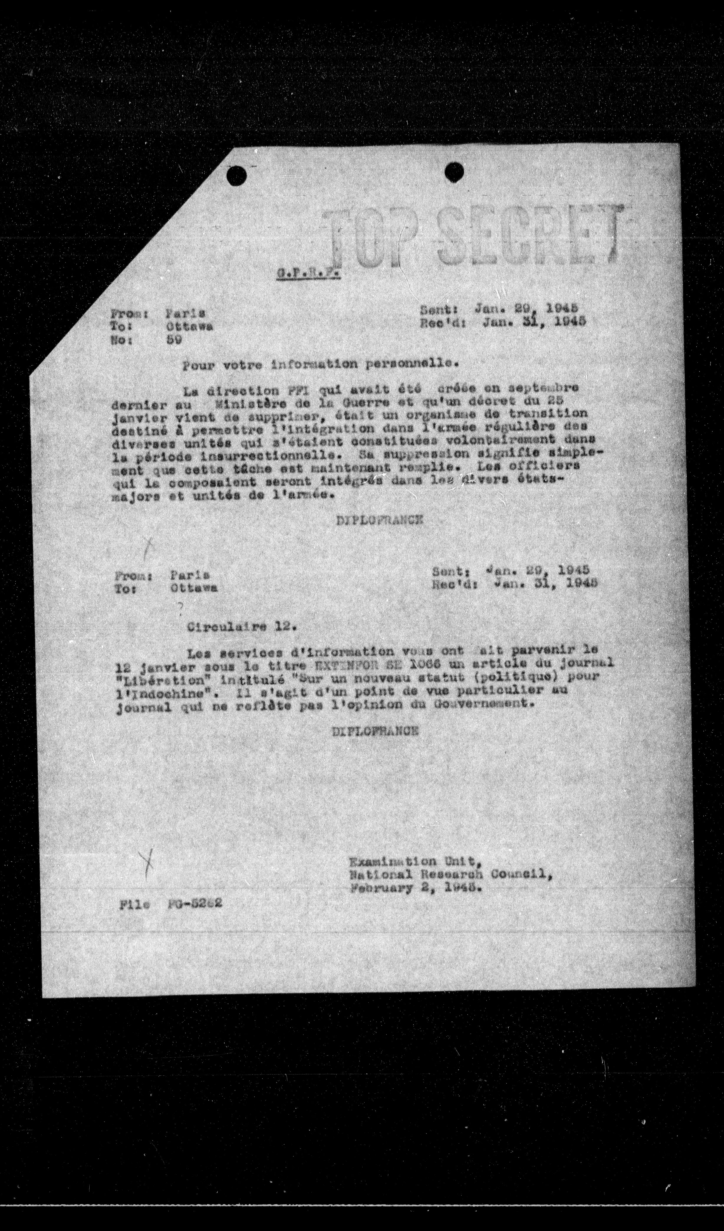 **From:** Paris **To:** Ottawa