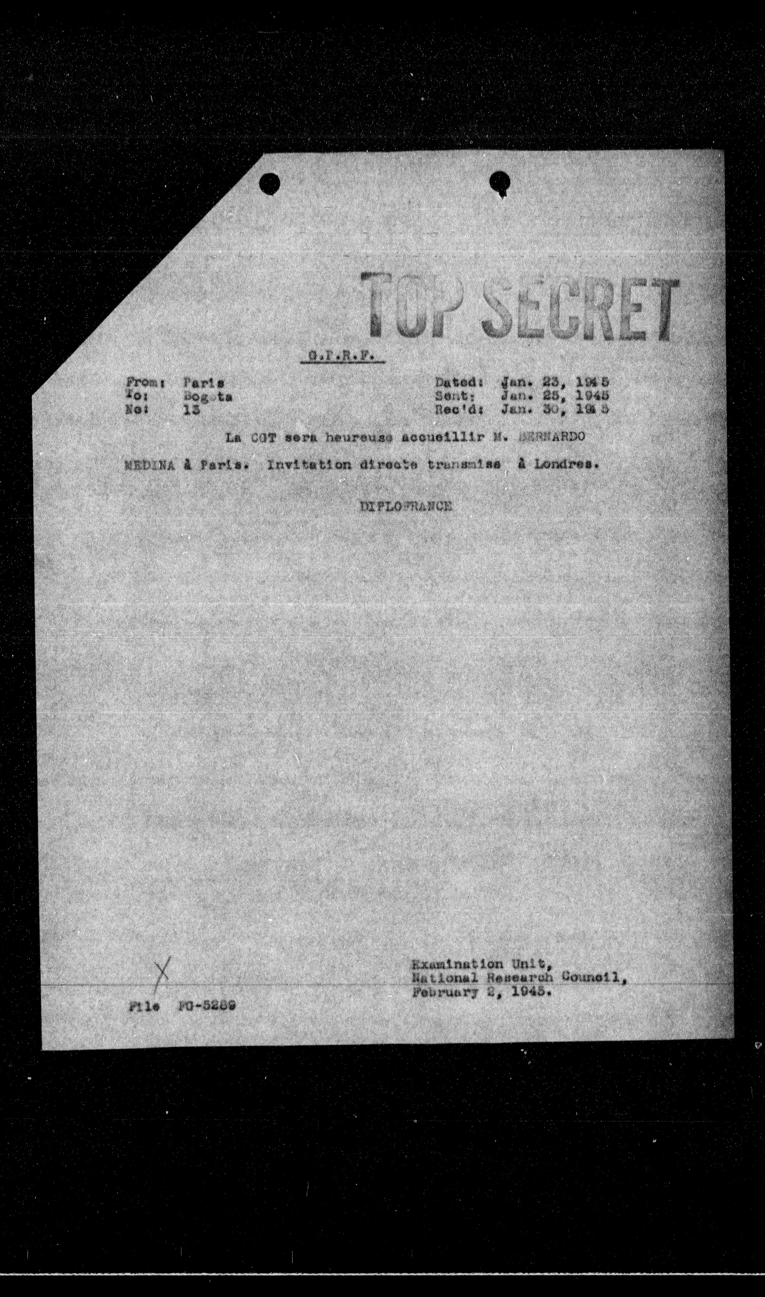 Dated: Jan. 23, 1945 Sent: Jan. 25, 1945 Rec'd: Jan. 30, 1945