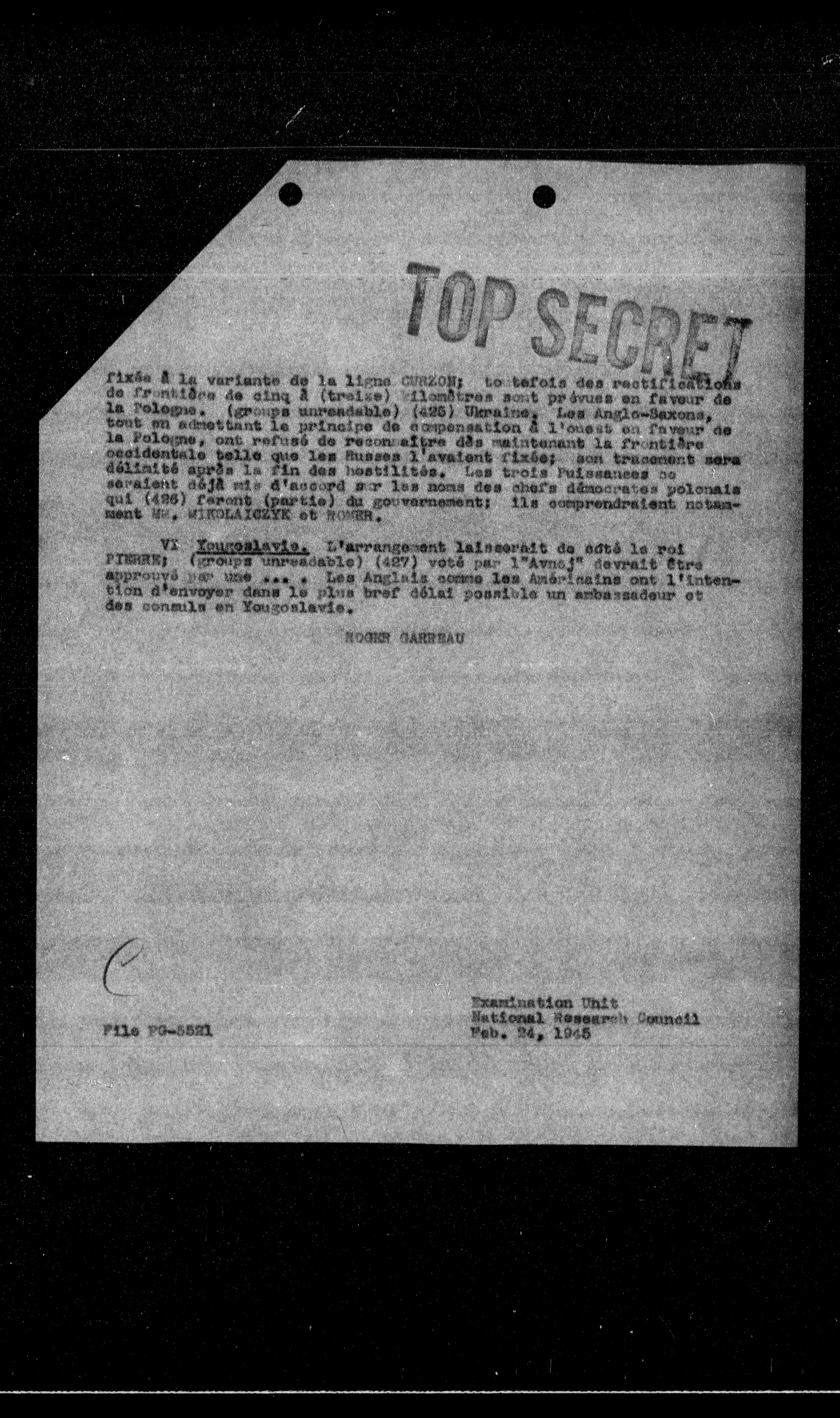 VI Yougoslavie. L'arrangement laisserait de côté le roi PIERRE; (groupe unreadable) (487) voté par l'Avro; devrait être approuvé par une ... Les Anglais comme les Américains ont l'intention d'envoyer dans le plus bref délai possible un ambassadeur et des conseils en Yougoslavie.