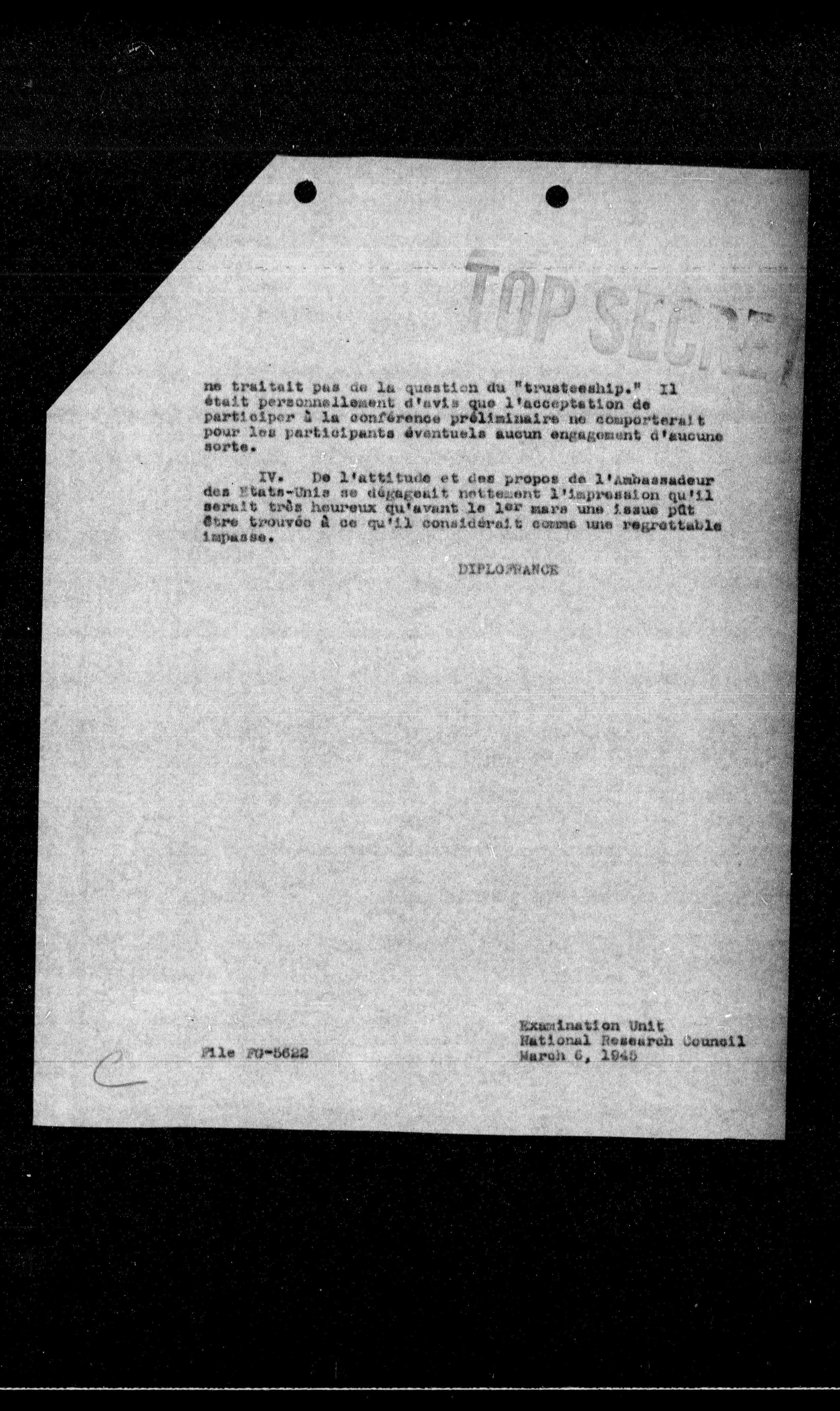 IV. De l'attitude et des propos de l'ambassadeur des États-Unis se dégageait nettement l'impression qu'il serait très heureux qu'avant le 1er mars une issue pût être trouvée à ce qu'il considérait comme une regrettable impasse.