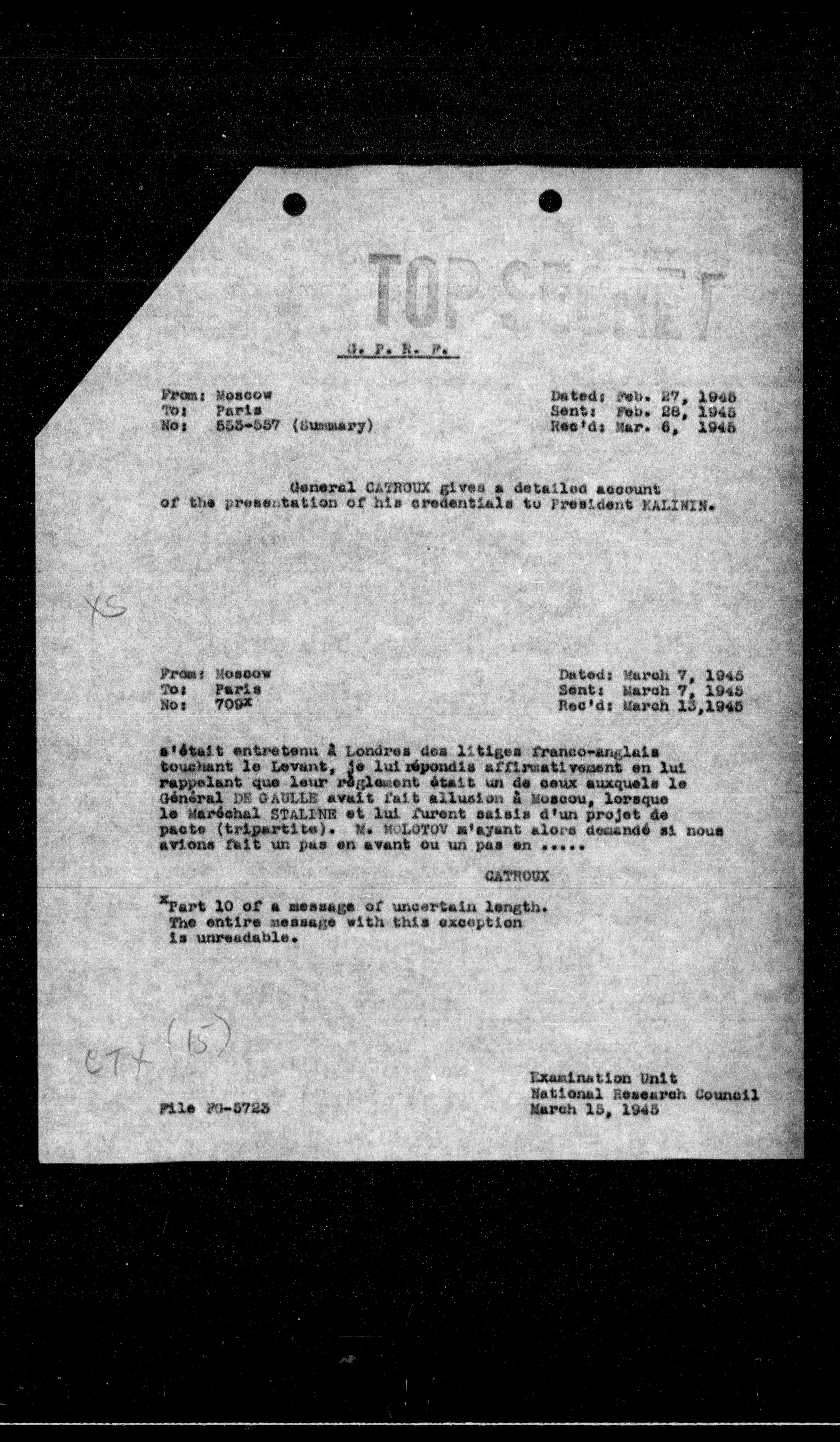 **From:** Moscow **To:** **Paris** **No:** 709X