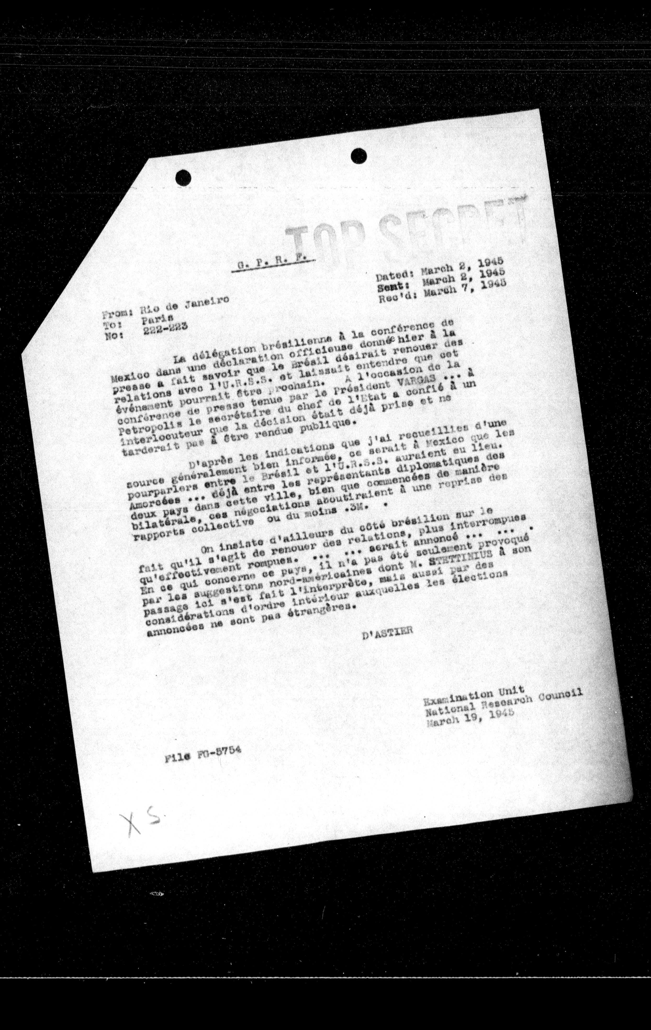 **Sent:** March 2, 1945