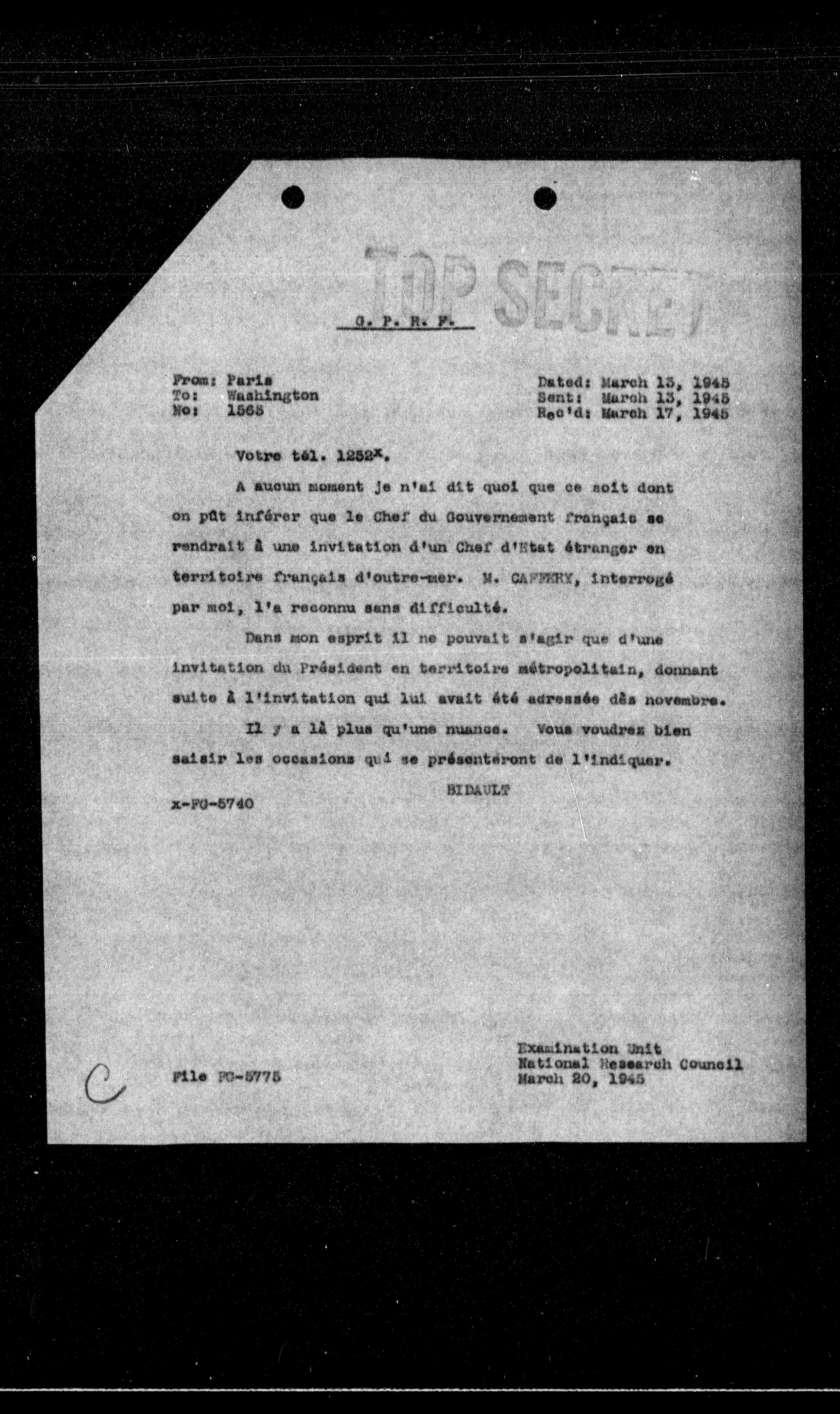 Dated: March 13, 1945 Sent: March 13, 1945 Rec'd: March 17, 1945