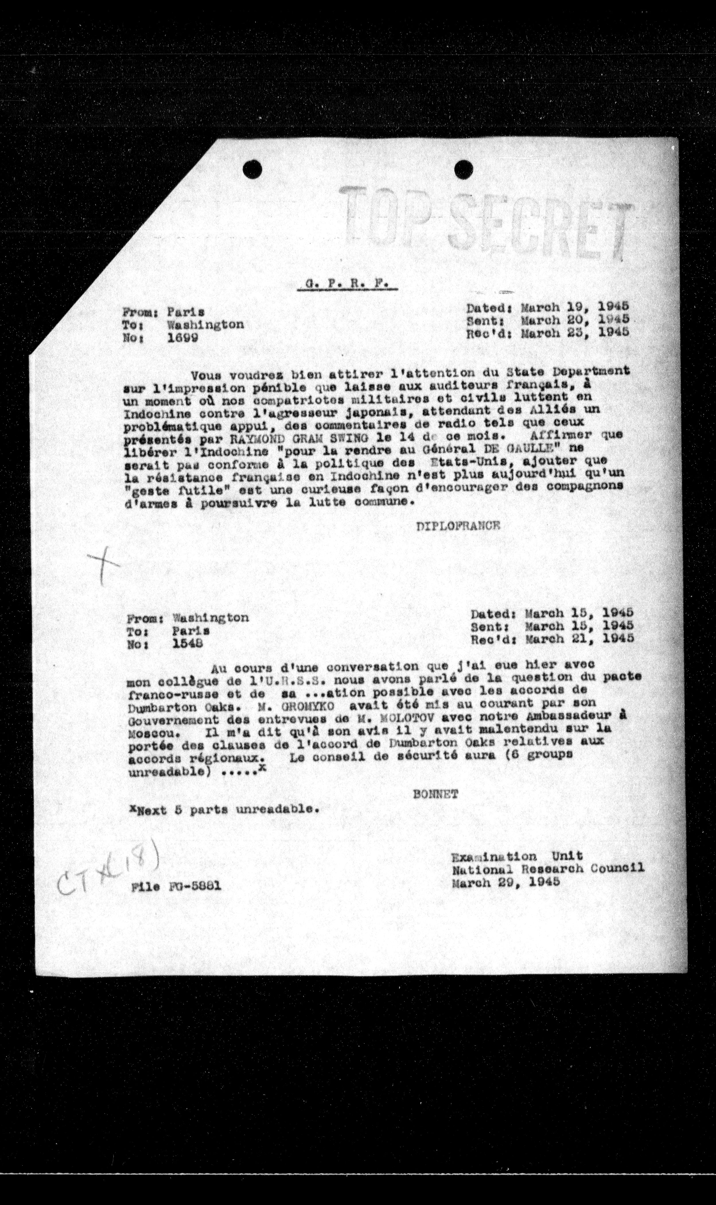 **From:** Washington **To:** Paris **No:** 1545