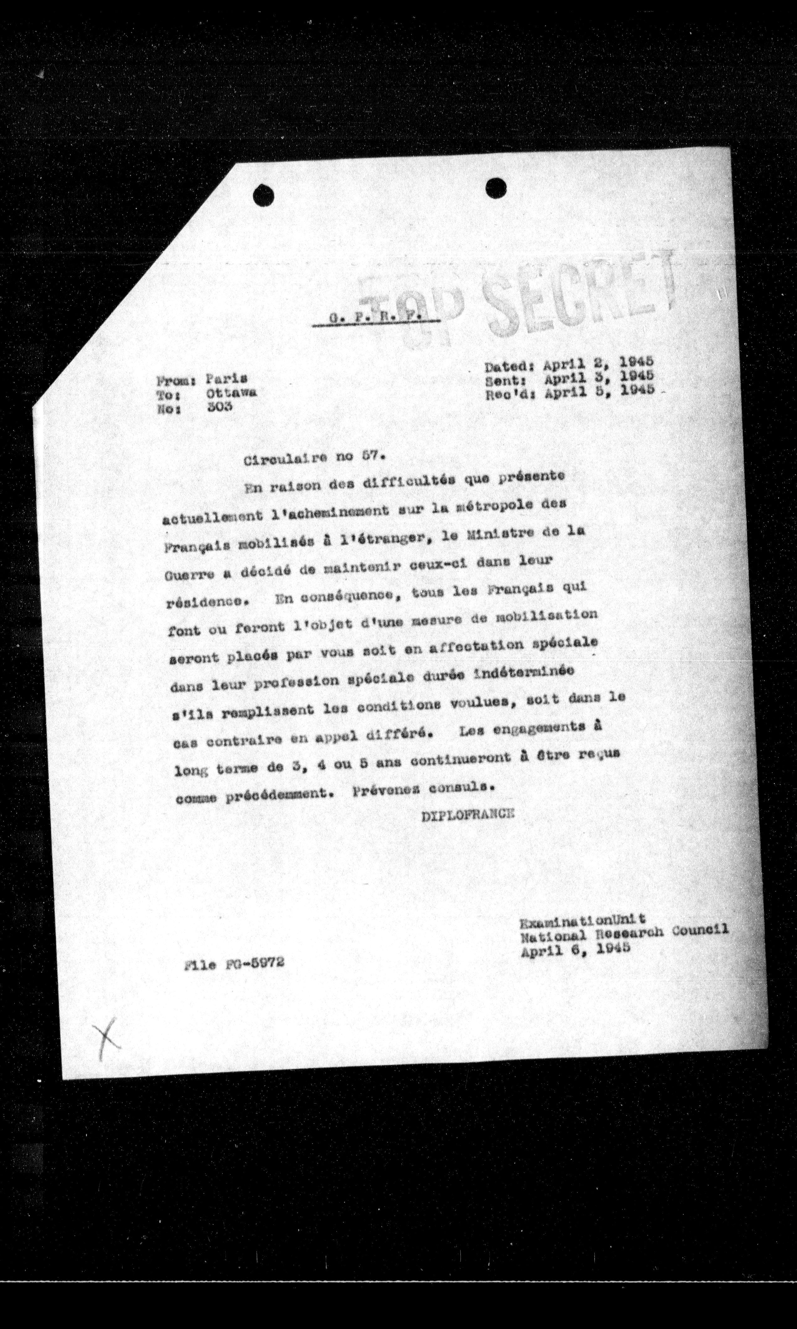 **From:** Paris **To:** Ottawa **No:** 303