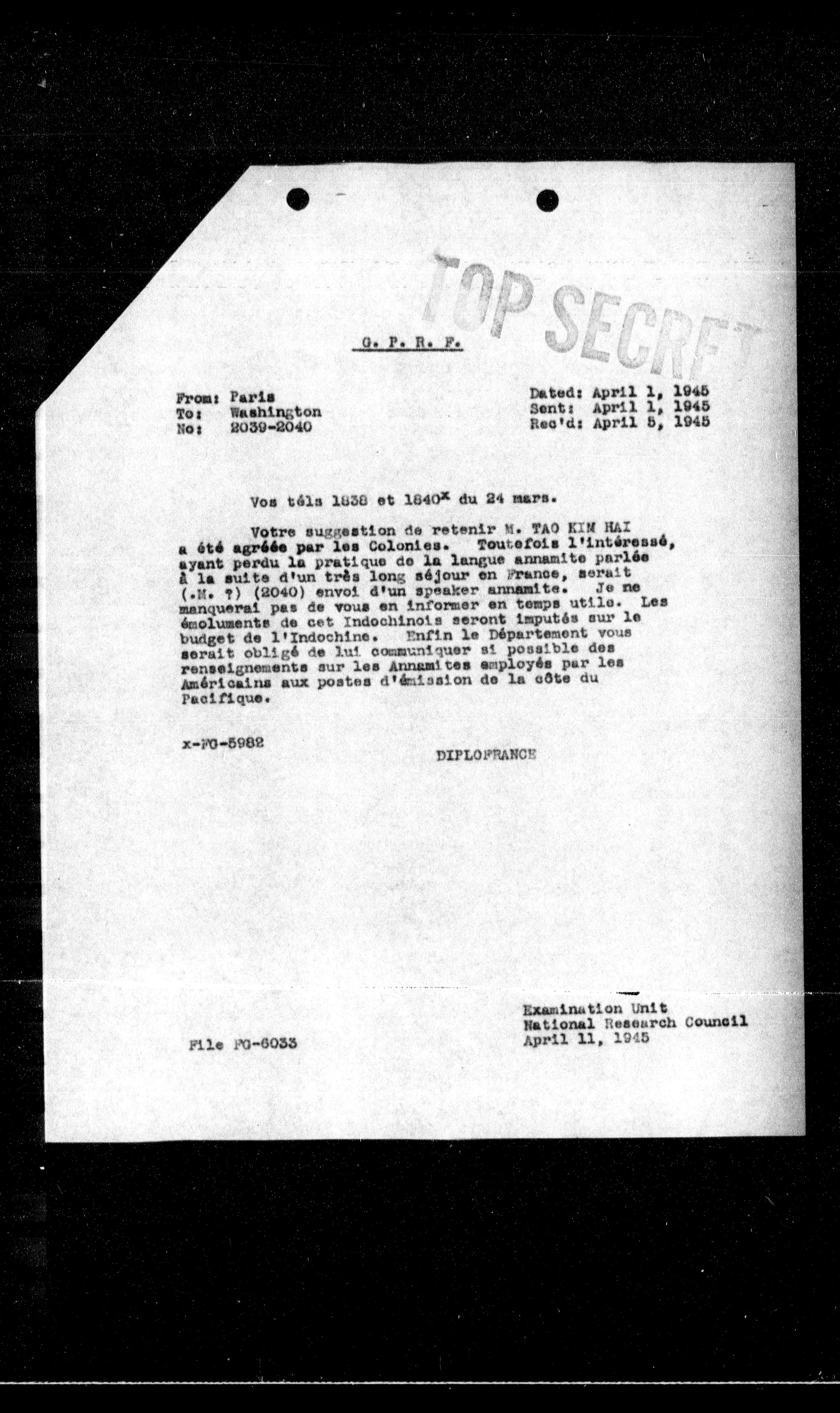 “Reel 17425 - Page 2504,” The Canadian Vichy Intercepts, accessed January 16, 2026, http://omeka.uottawa.ca/examination-unit/items/show/13761.