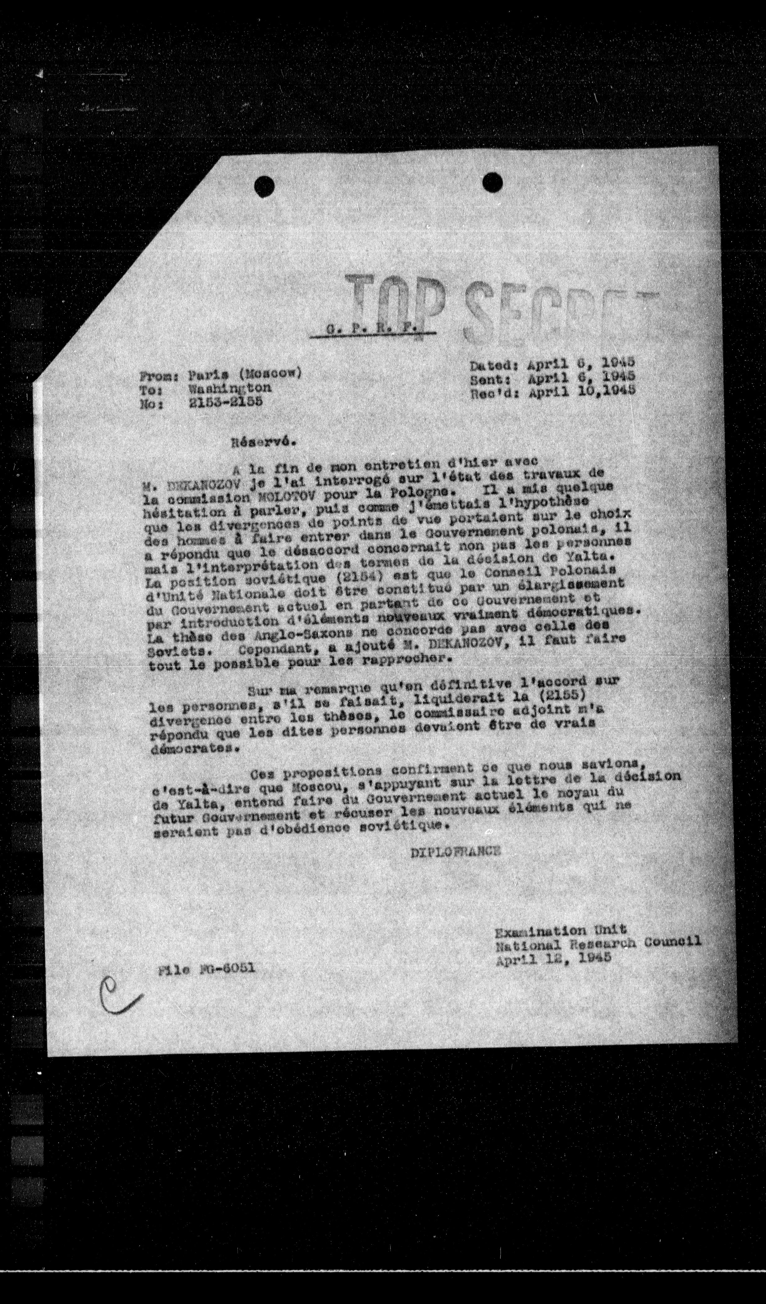 Sent: April 6, 1945