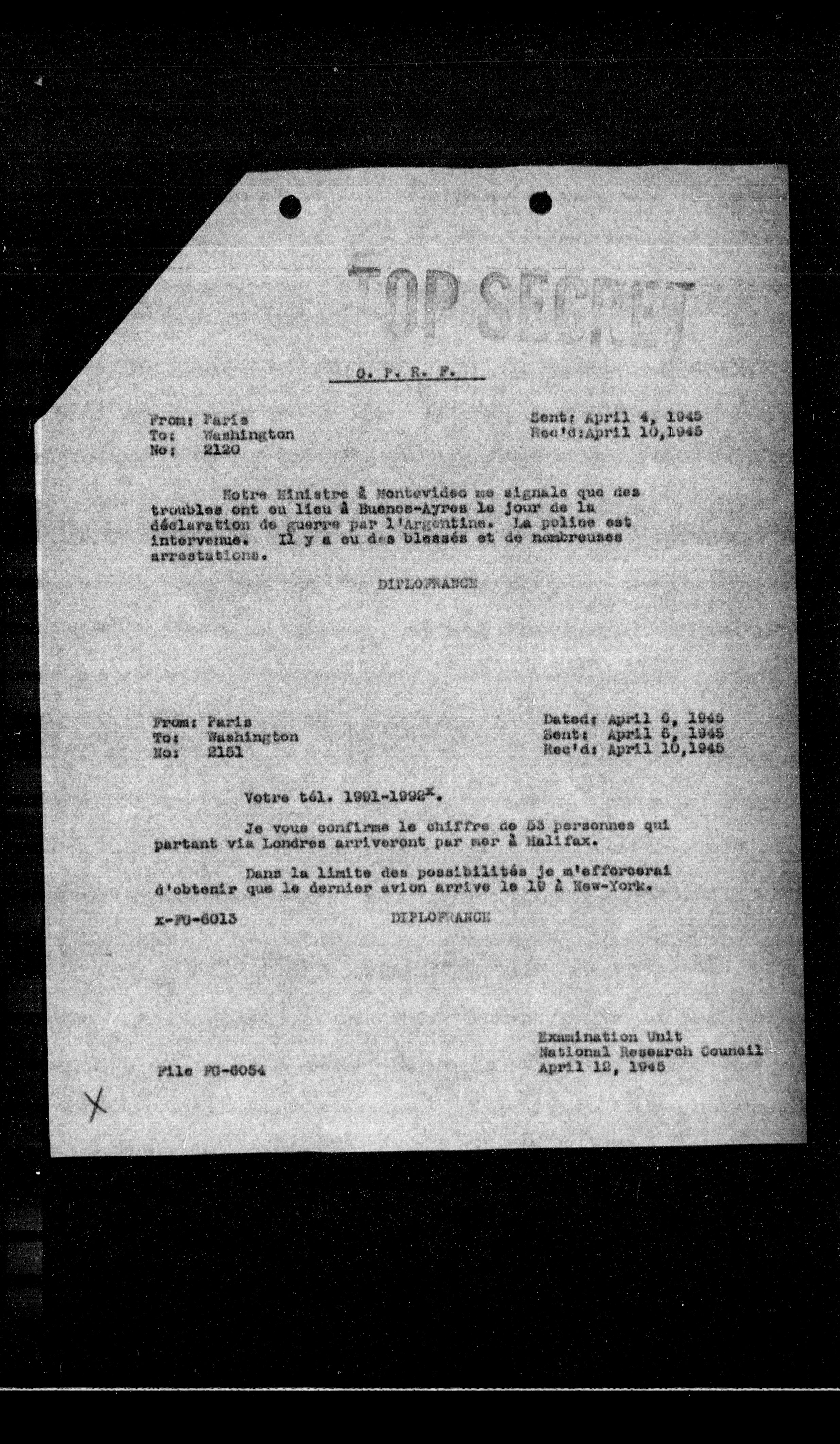 **Dated:** April 6, 1945 **Sent:** April 6, 1945 **Rec'd:** April 10, 1945