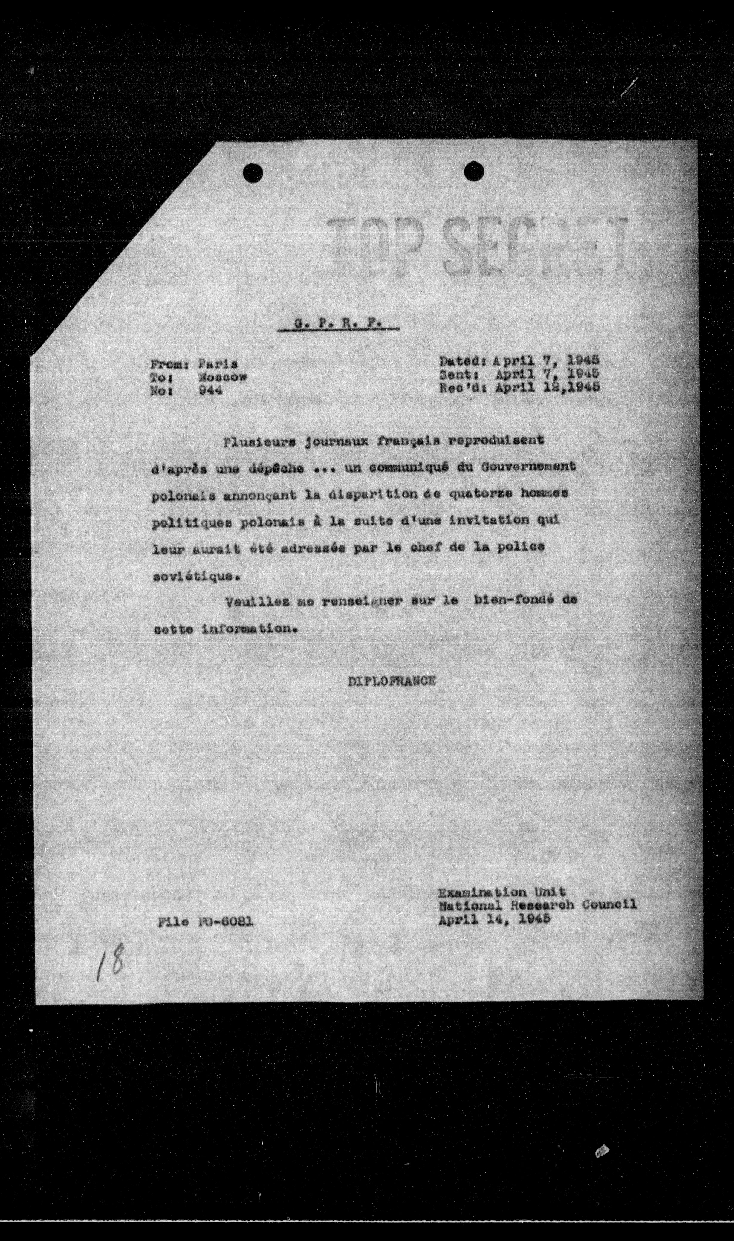 | From: Paris | Dated: April 7, 1945 |