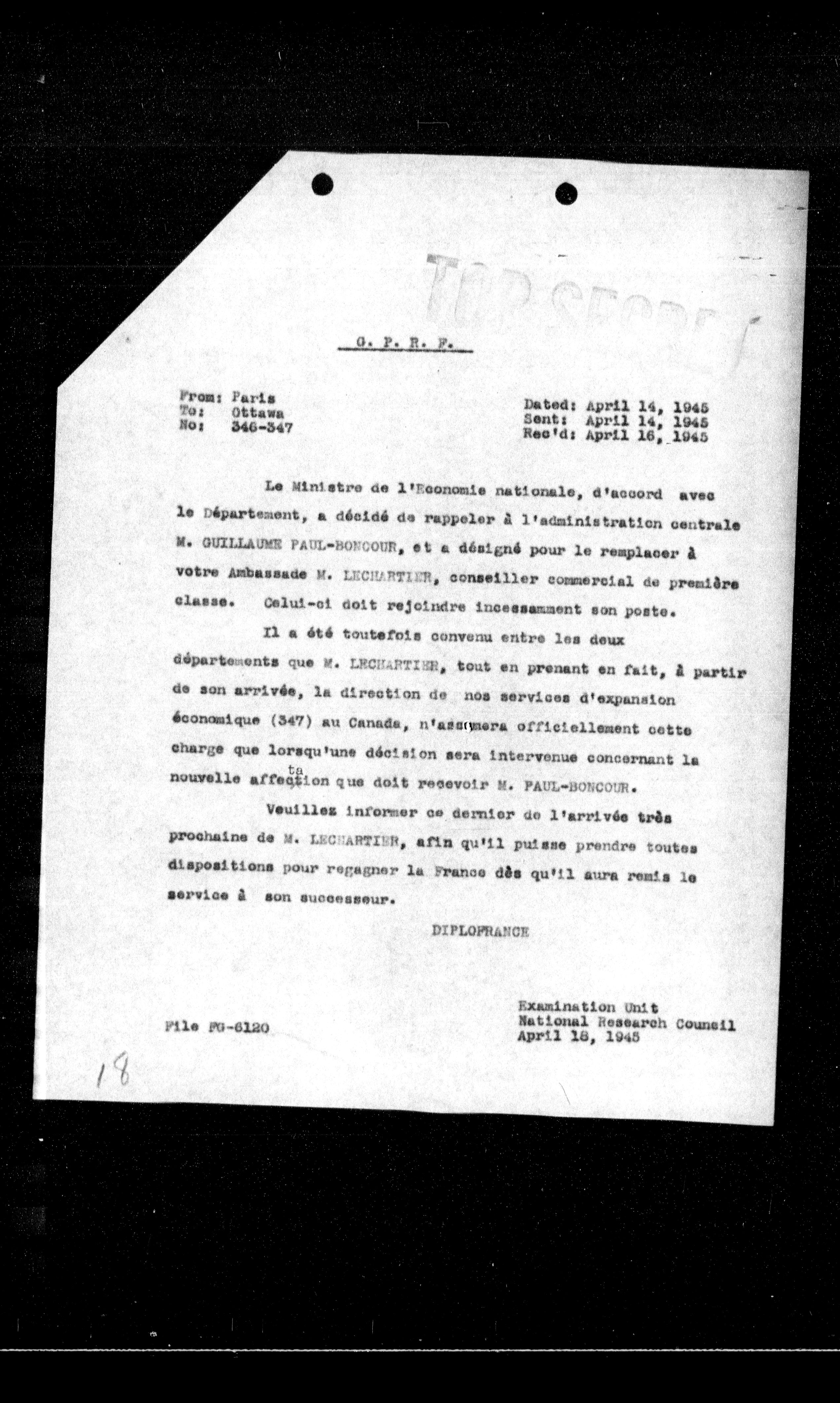 “Reel 17425 - Page 2607,” The Canadian Vichy Intercepts, accessed January 16, 2026, http://omeka.uottawa.ca/examination-unit/items/show/13864.