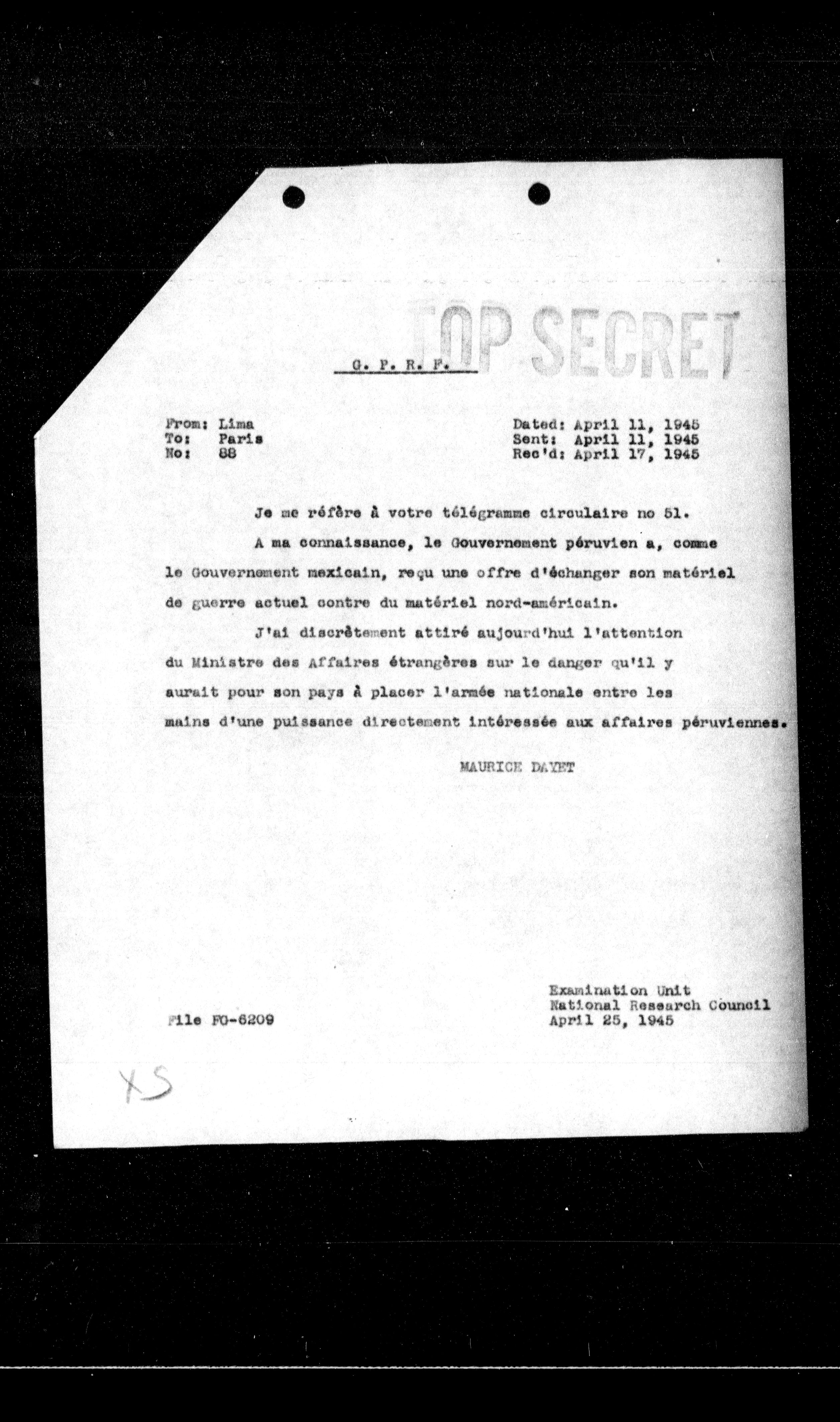 Sent: April 11, 1945