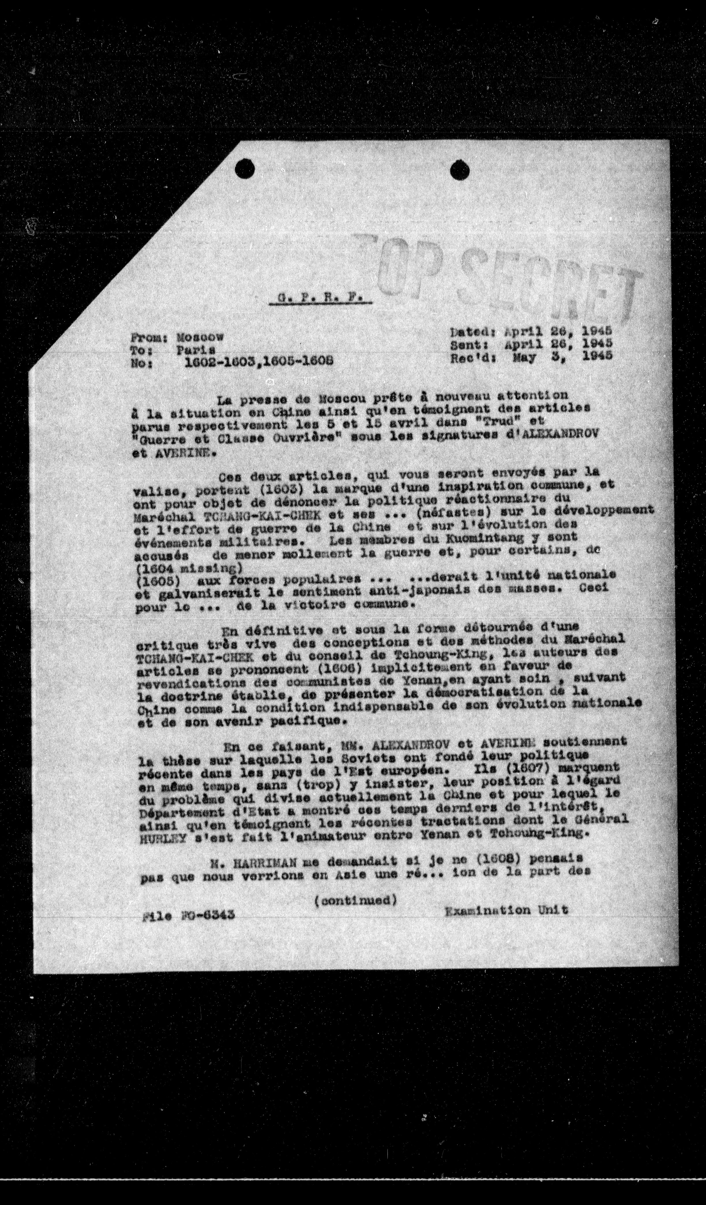 Rec'd: May 3, 1945