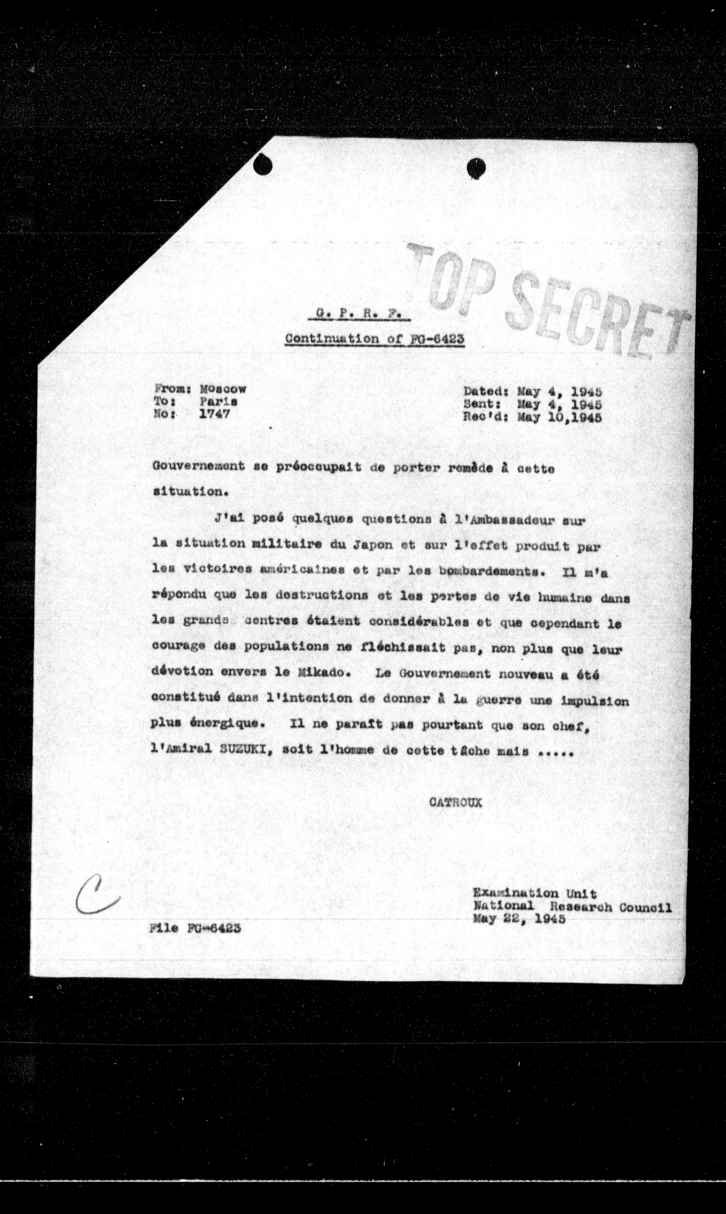 | From: Hoscow | Dated: May 4, 1945 |