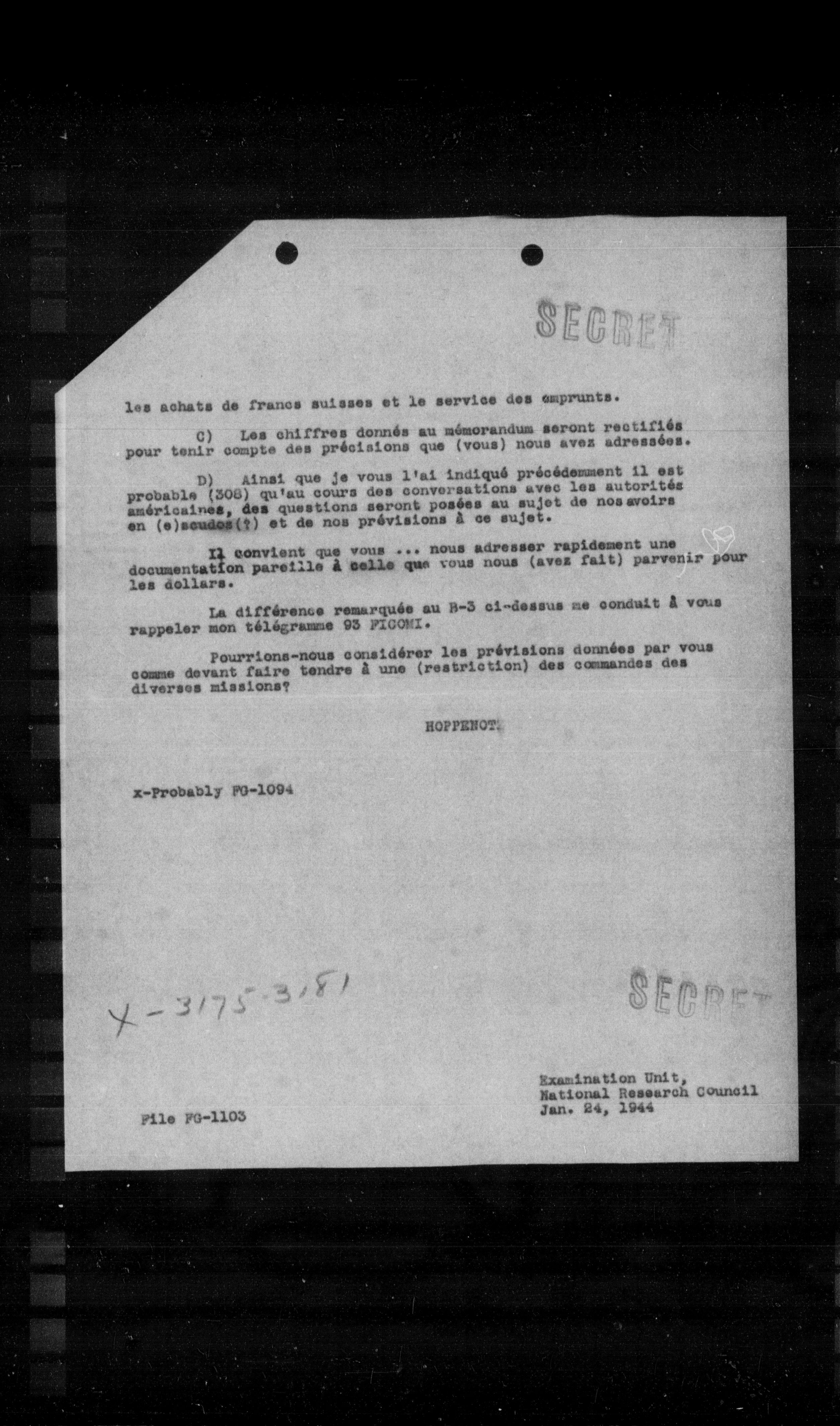 Examination Unit, National Research Council Jan. 24, 1944