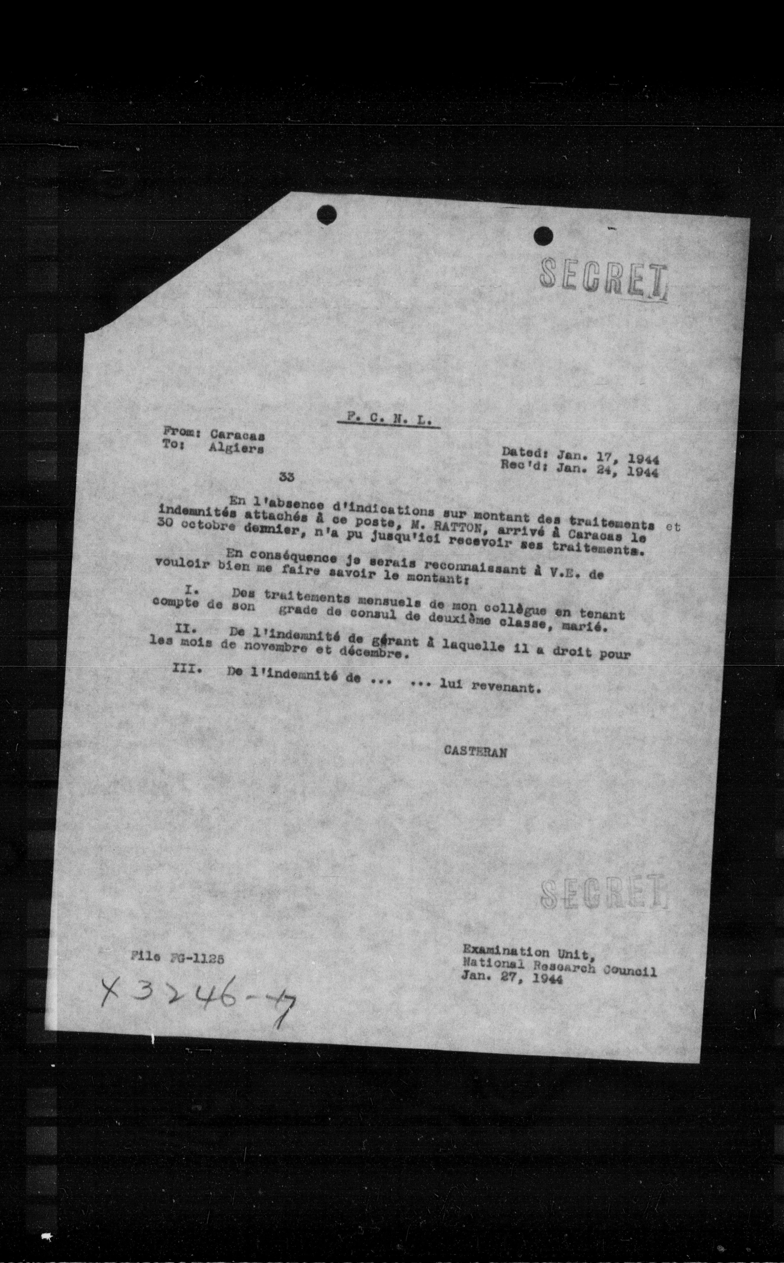 Examination Unit, National Research Council Jan. 27, 1944
