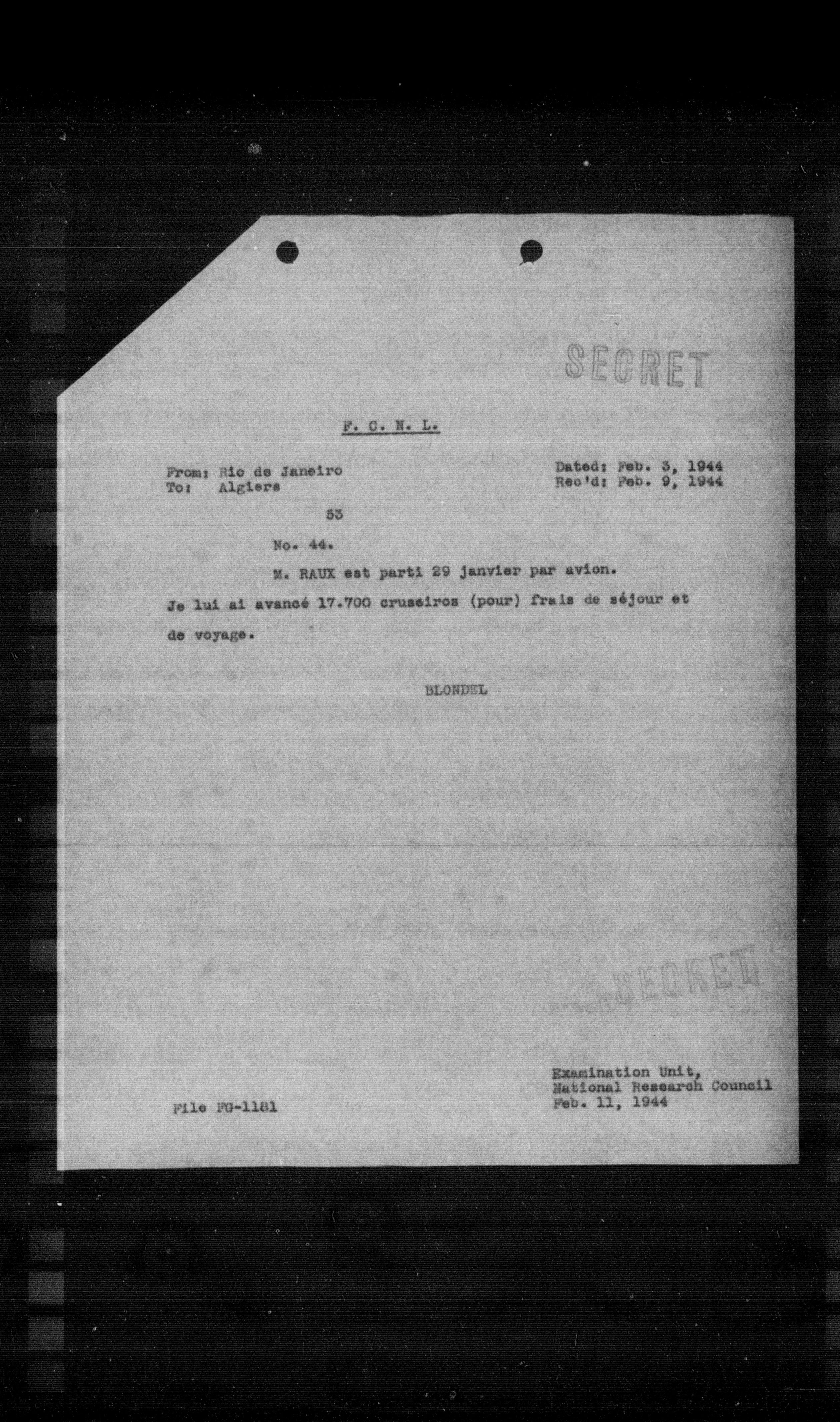 Examination Unit, National Research Council Feb. 11, 1944