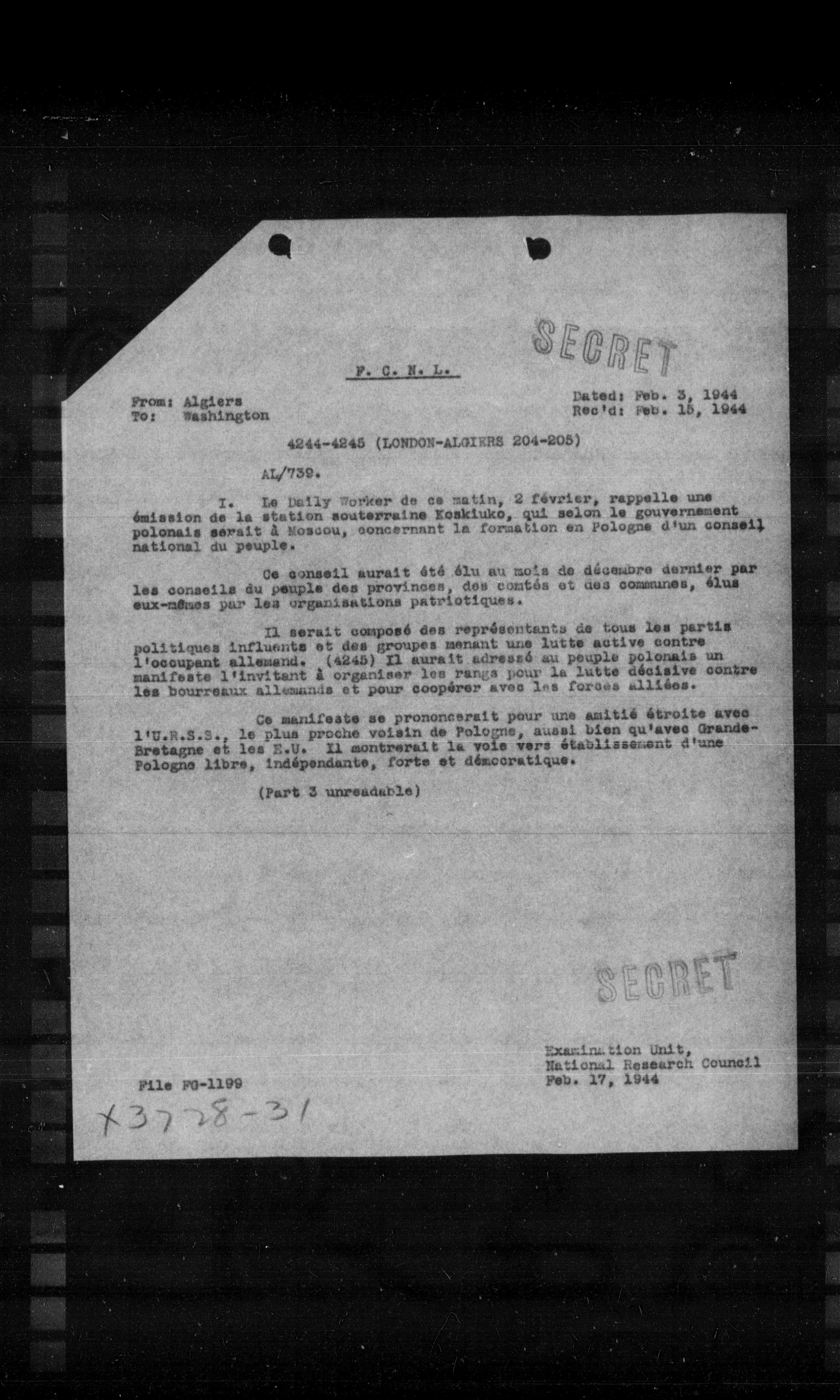 I. Le Daily Worker de sa matin, 2 février, rappelle une émission de la station souterraine Koskiuko, qui selon le gouvernement polonais serait a Moscou, concernant la formation en Pologne d'un conseil national du peuple.