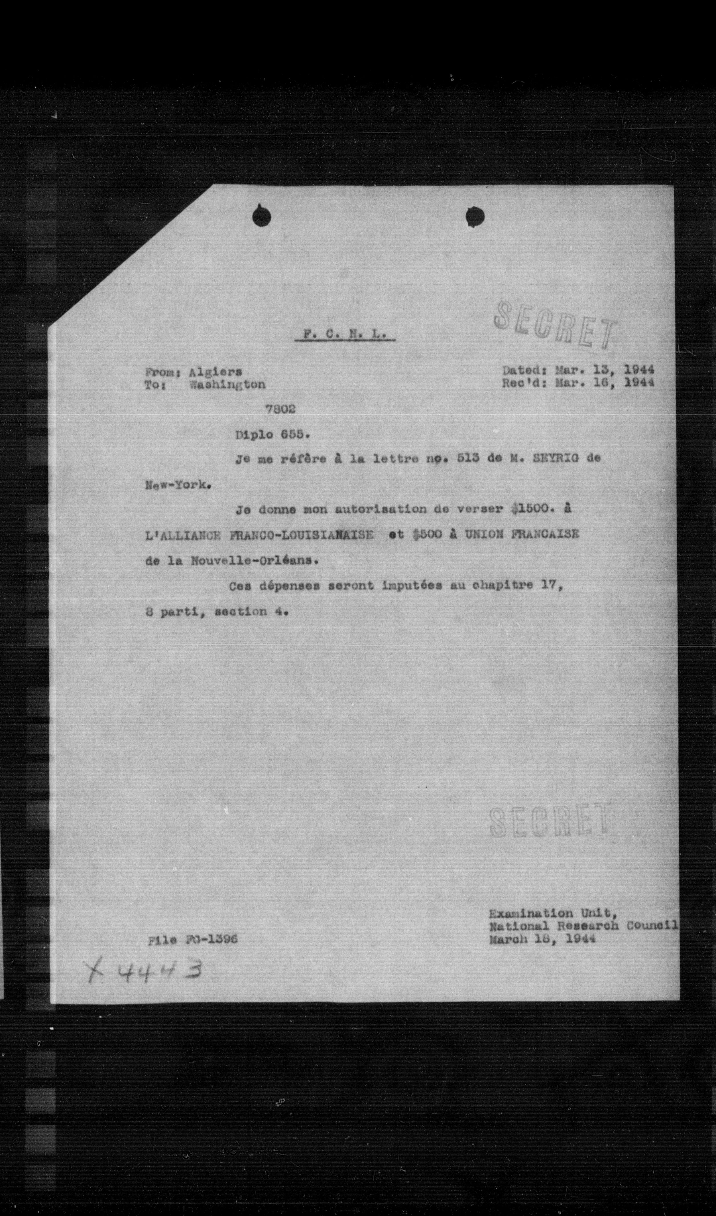 **Rec'd:** Mar. 16, 1944