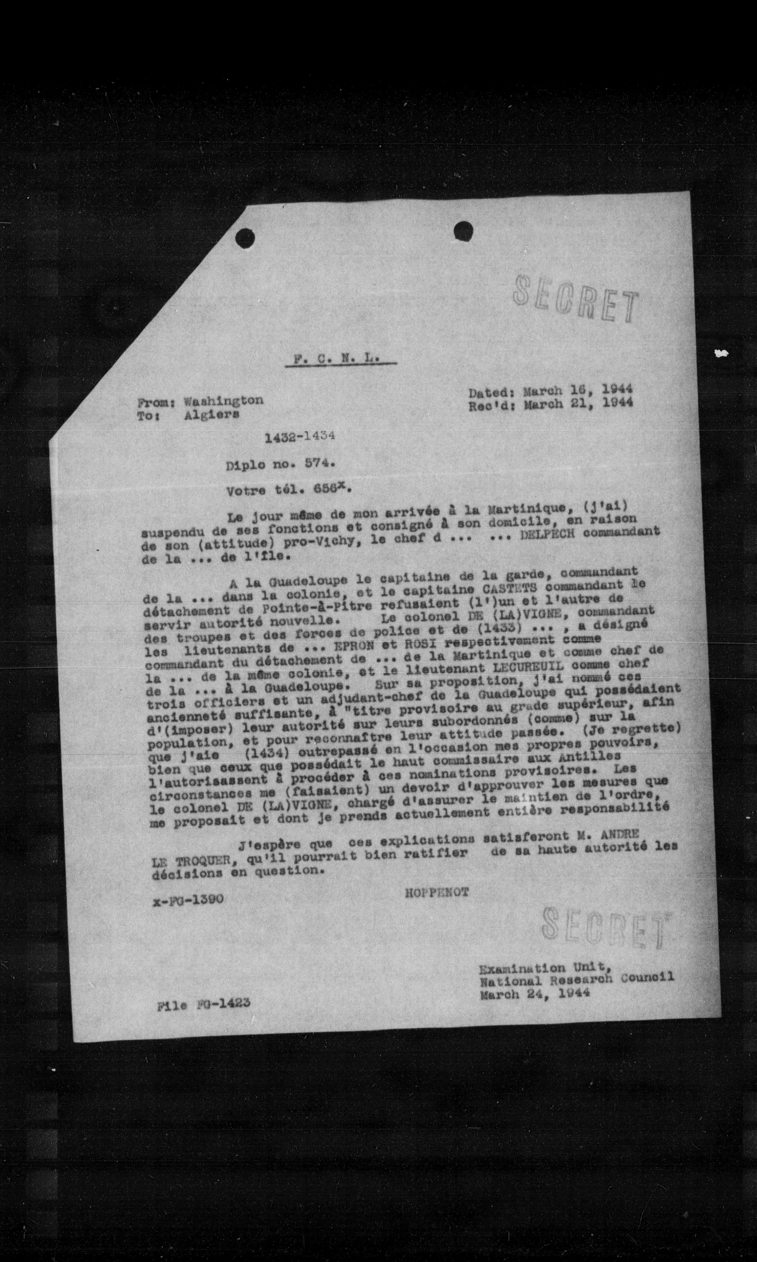 “Reel 17426 - Page 0364,” The Canadian Vichy Intercepts, accessed January 23, 2026, http://omeka.uottawa.ca/examination-unit/items/show/14778.