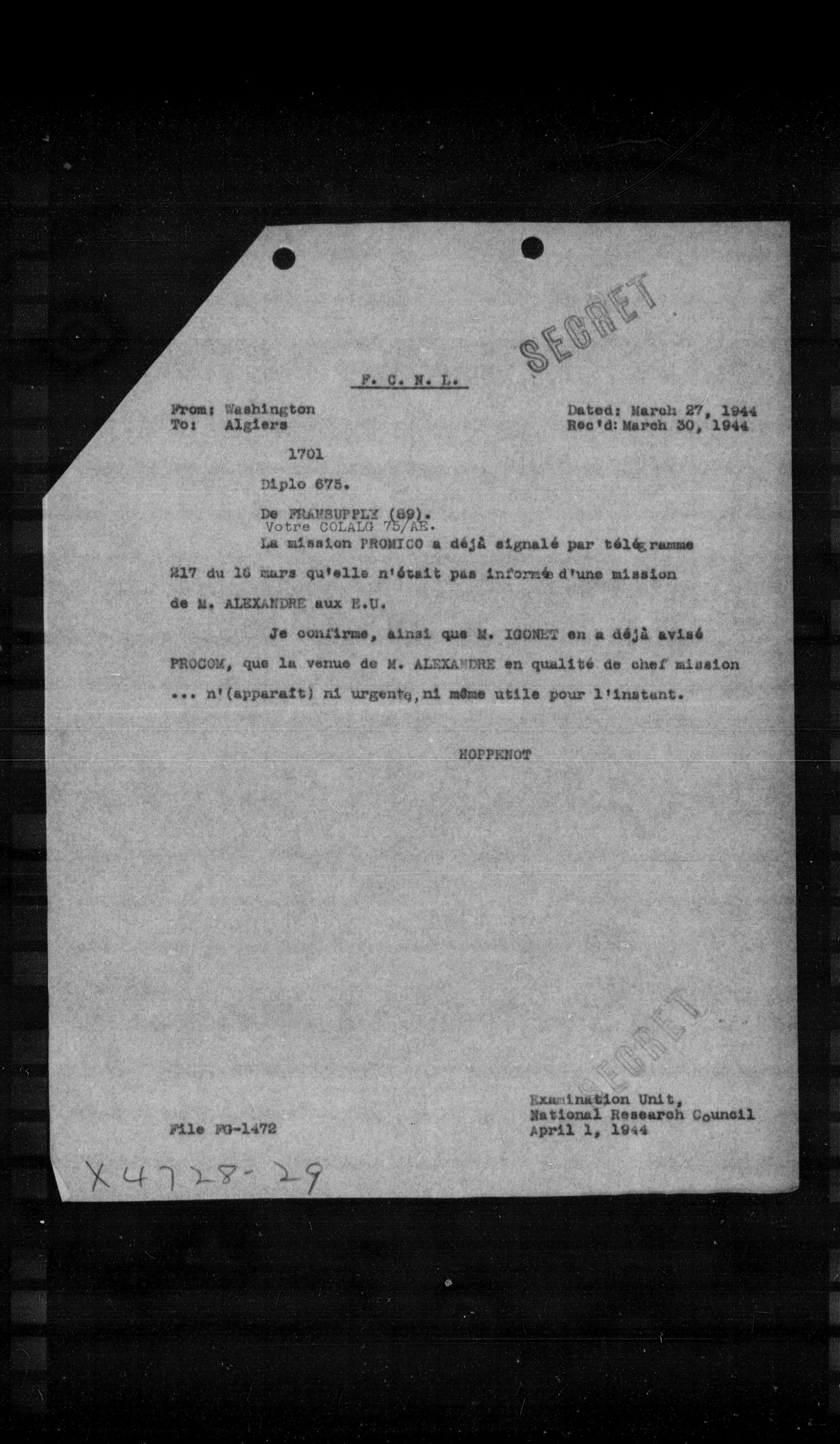 “Reel 17426 - Page 0417,” The Canadian Vichy Intercepts, accessed January 23, 2026, http://omeka.uottawa.ca/examination-unit/items/show/14831.
