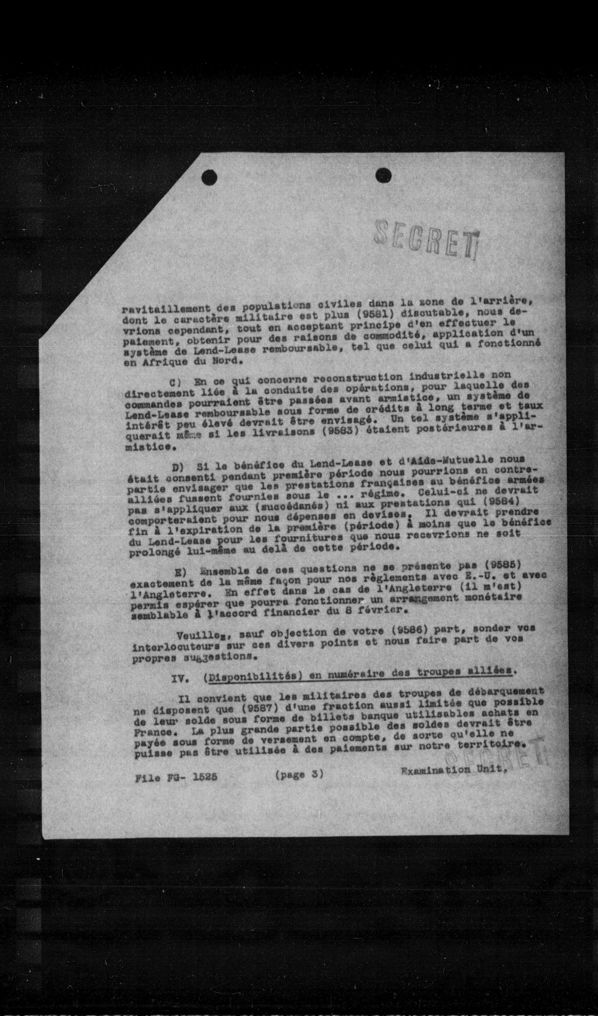 ravitaillement des populations civiles dans la zone de l'arrière, dont le caractère militaire est plus (9581) discutable, nous devrions cependant, tout en acceptant principe d'en effectuer le paiement, obtenir pour des raisons de commodité, application d'un système de Lend-Lease remboursable, tel que celui qui a fonctionné en Afrique du Nord.