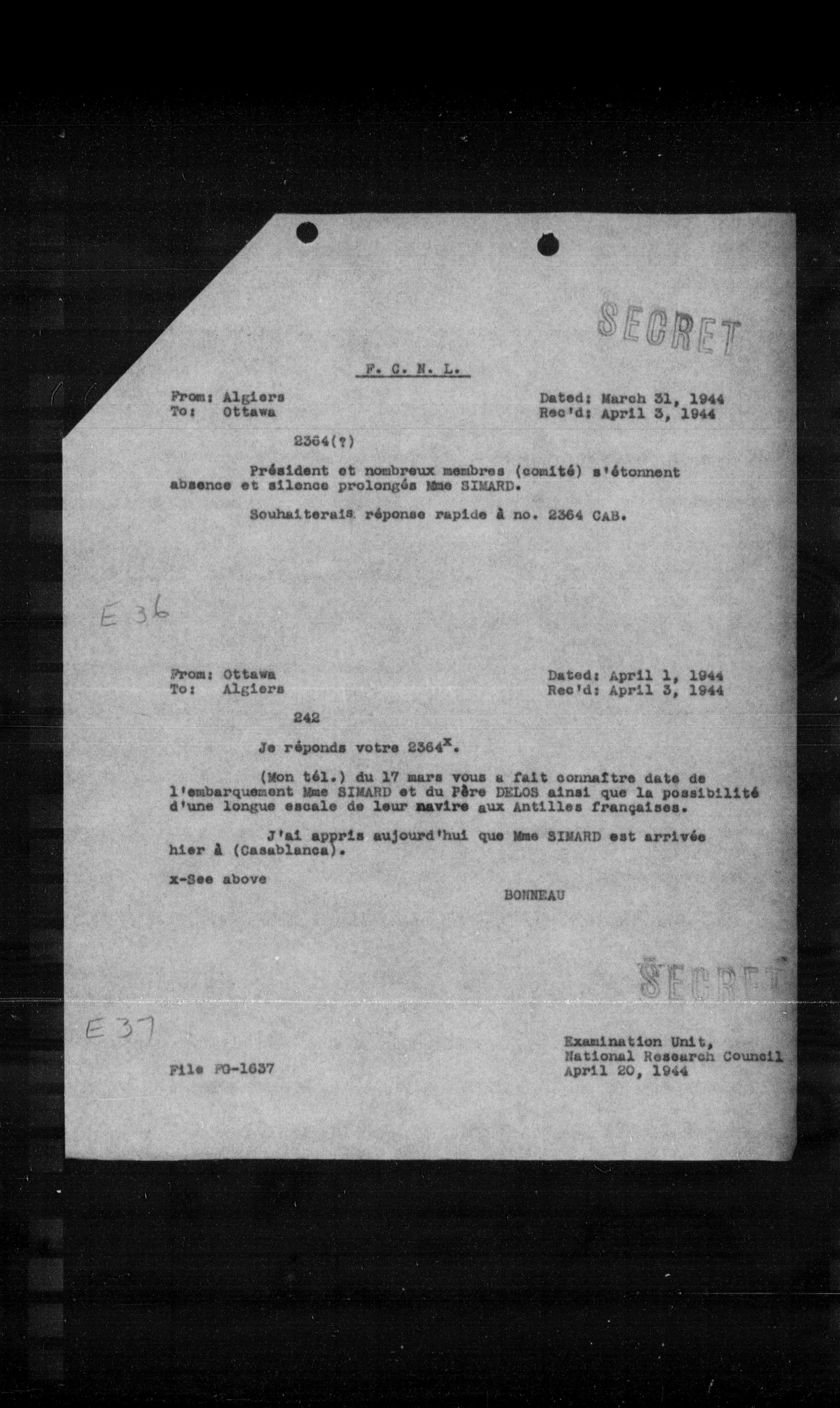 “Reel 17426 - Page 0629,” The Canadian Vichy Intercepts, accessed January 25, 2026, http://omeka.uottawa.ca/examination-unit/items/show/15043.