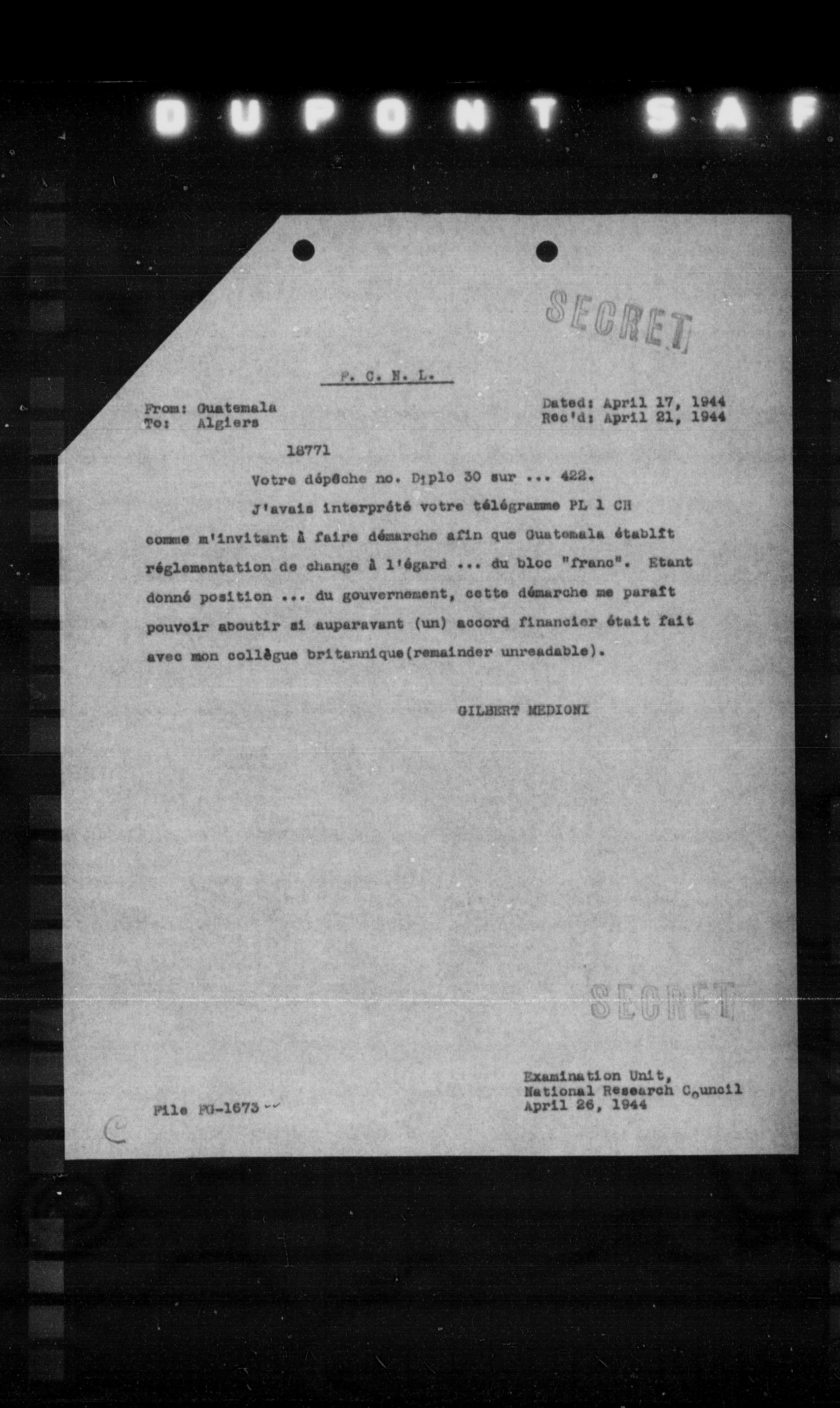 “Reel 17426 - Page 0679,” The Canadian Vichy Intercepts, accessed January 25, 2026, http://omeka.uottawa.ca/examination-unit/items/show/15093.