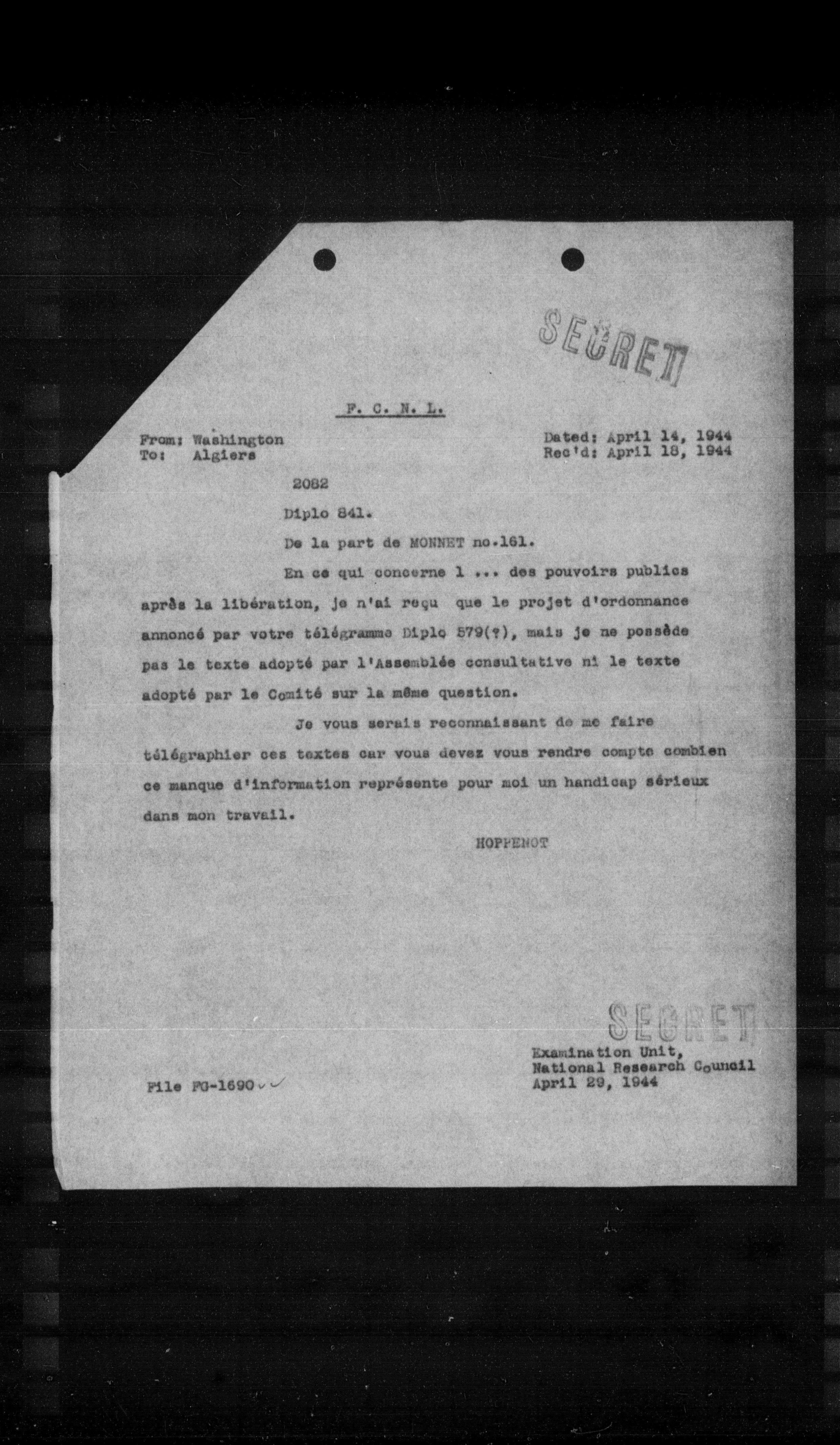 “Reel 17426 - Page 0699,” The Canadian Vichy Intercepts, accessed January 25, 2026, http://omeka.uottawa.ca/examination-unit/items/show/15113.