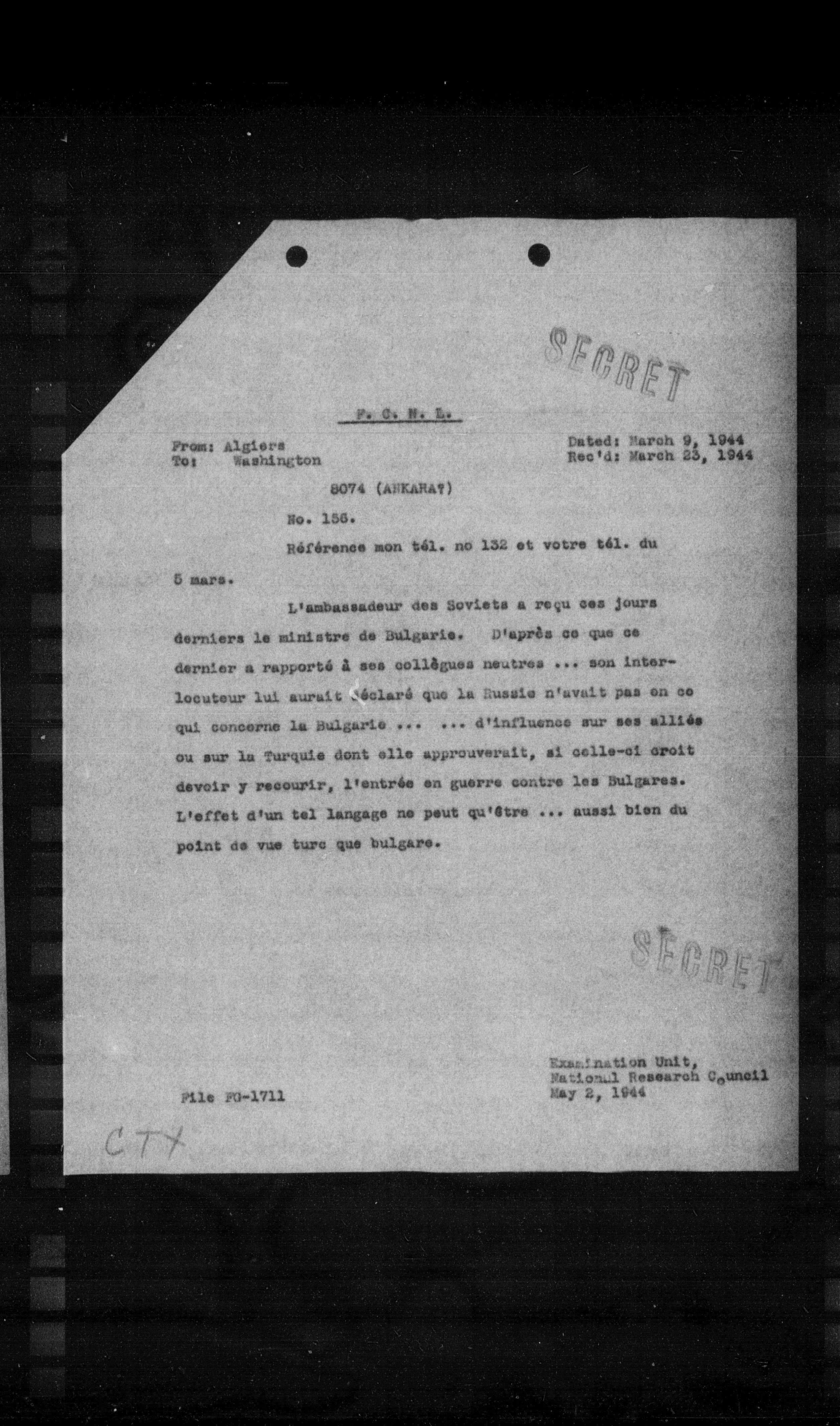 Examination Unit, National Research Council May 2, 1944