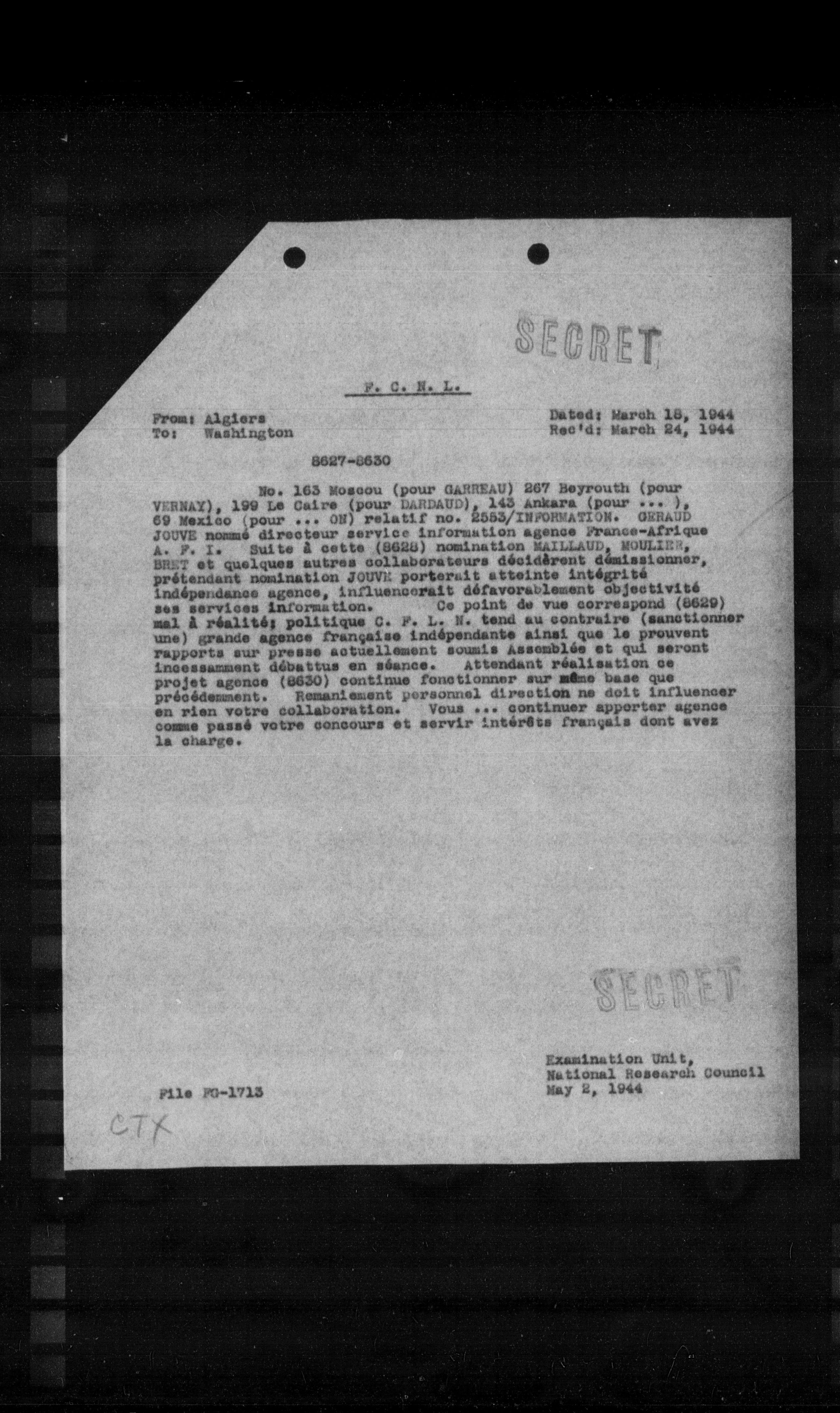 “Reel 17426 - Page 0726,” The Canadian Vichy Intercepts, accessed January 25, 2026, http://omeka.uottawa.ca/examination-unit/items/show/15140.