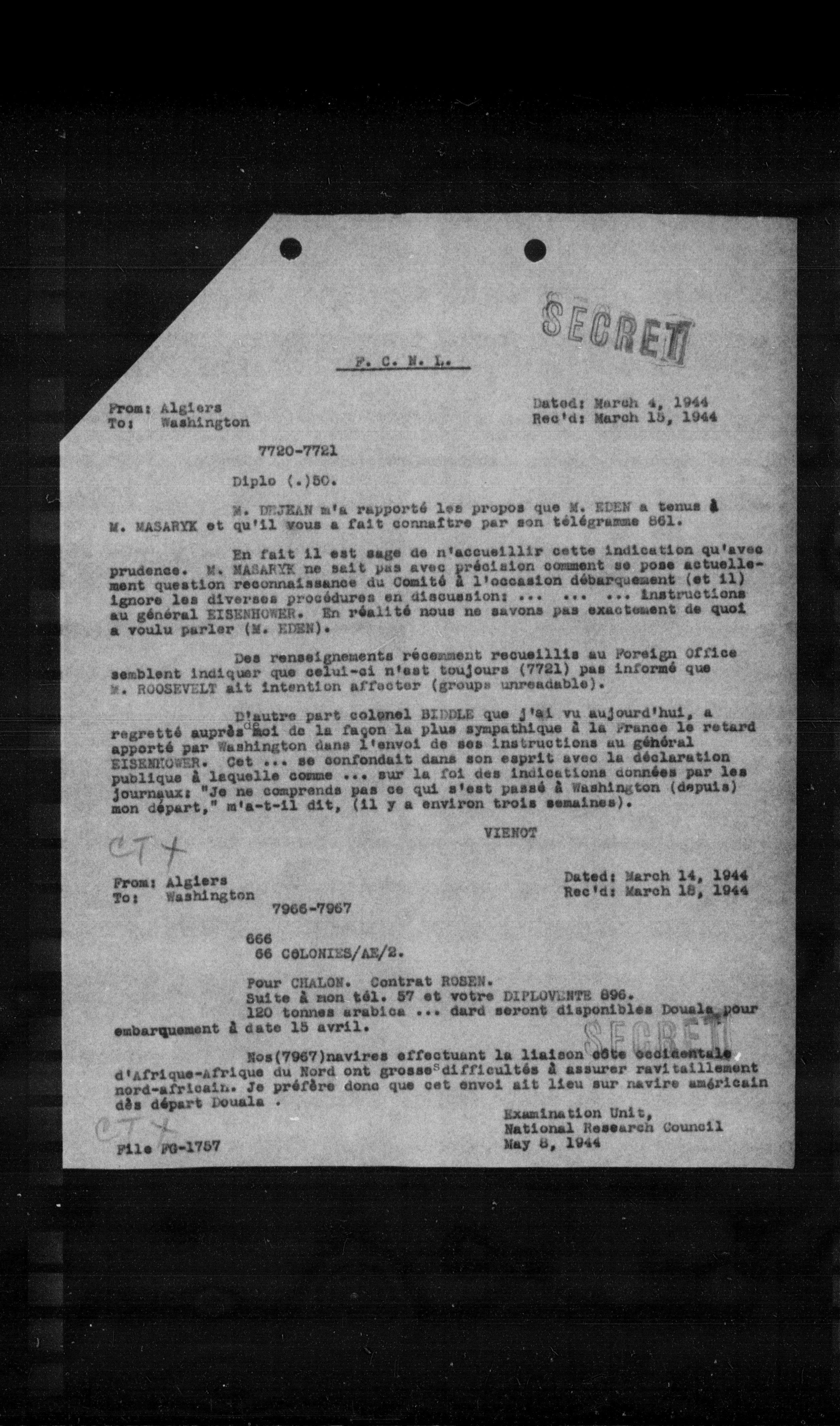 “Reel 17426 - Page 0783,” The Canadian Vichy Intercepts, accessed January 26, 2026, http://omeka.uottawa.ca/examination-unit/items/show/15197.