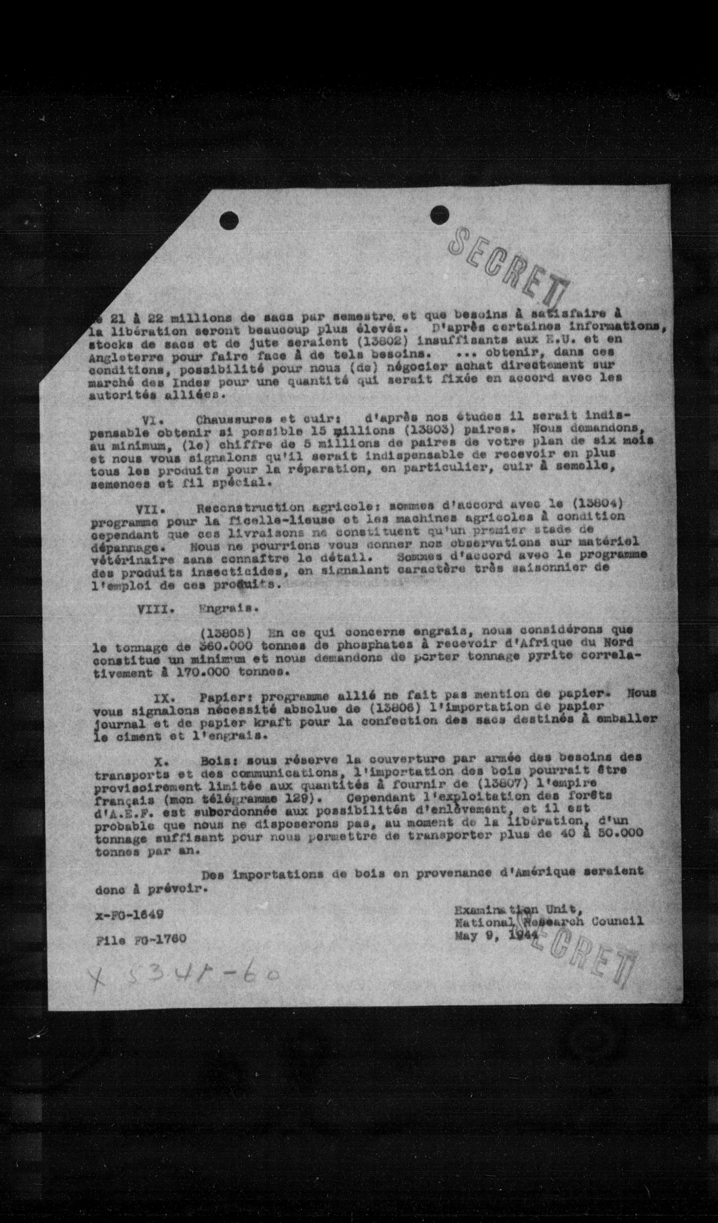 **IX.** Papier: programme allié ne fait pas mention de papier. Nous vous signalons nécessité absolue de (13806) l'importation de papier journal et de papier kraft pour la confection des sacs destinés à emballer le ciment et l'engrais.