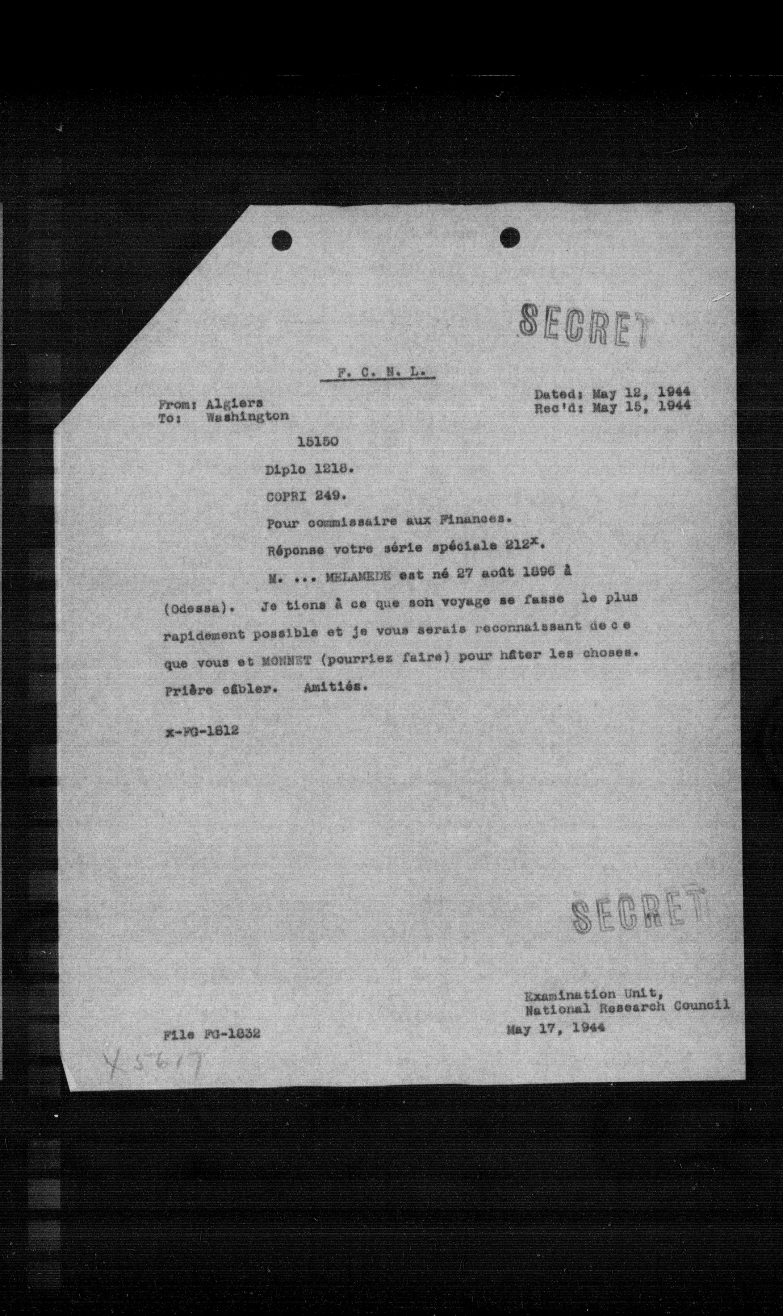 Examination Unit, National Research Council May 17, 1944