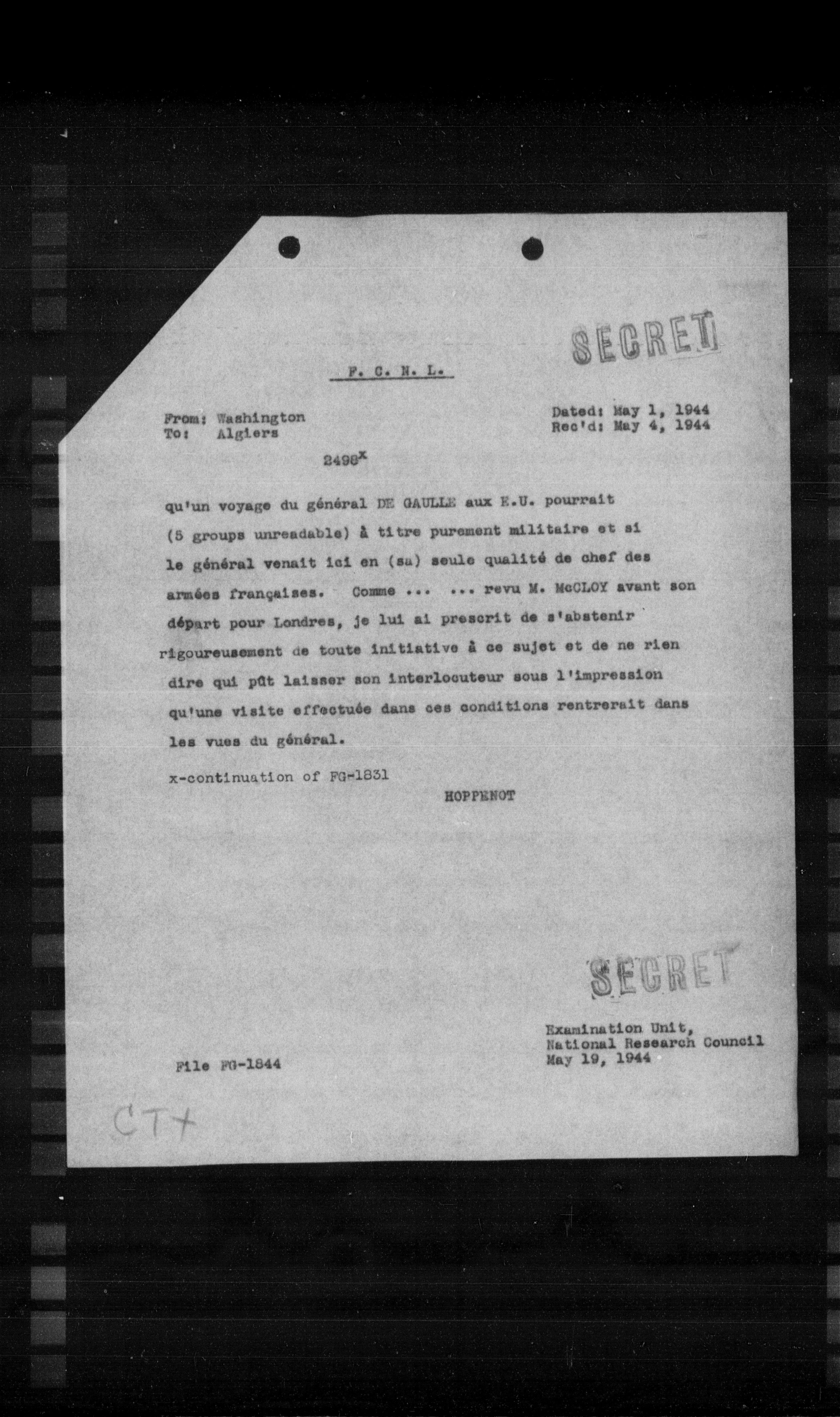 Examination Unit, National Research Council May 19, 1944