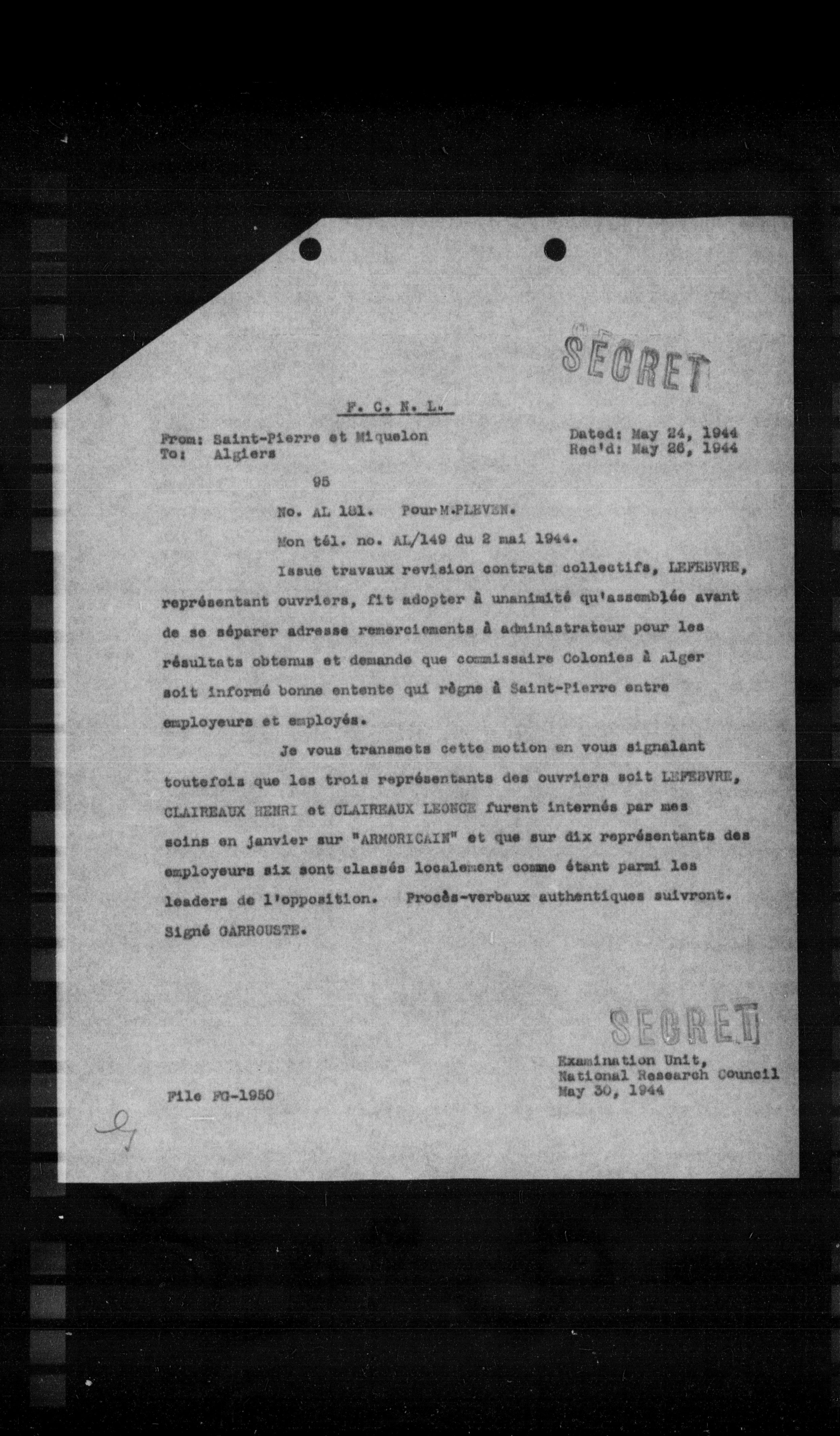 “Reel 17426 - Page 1015,” The Canadian Vichy Intercepts, accessed January 27, 2026, http://omeka.uottawa.ca/examination-unit/items/show/15429.